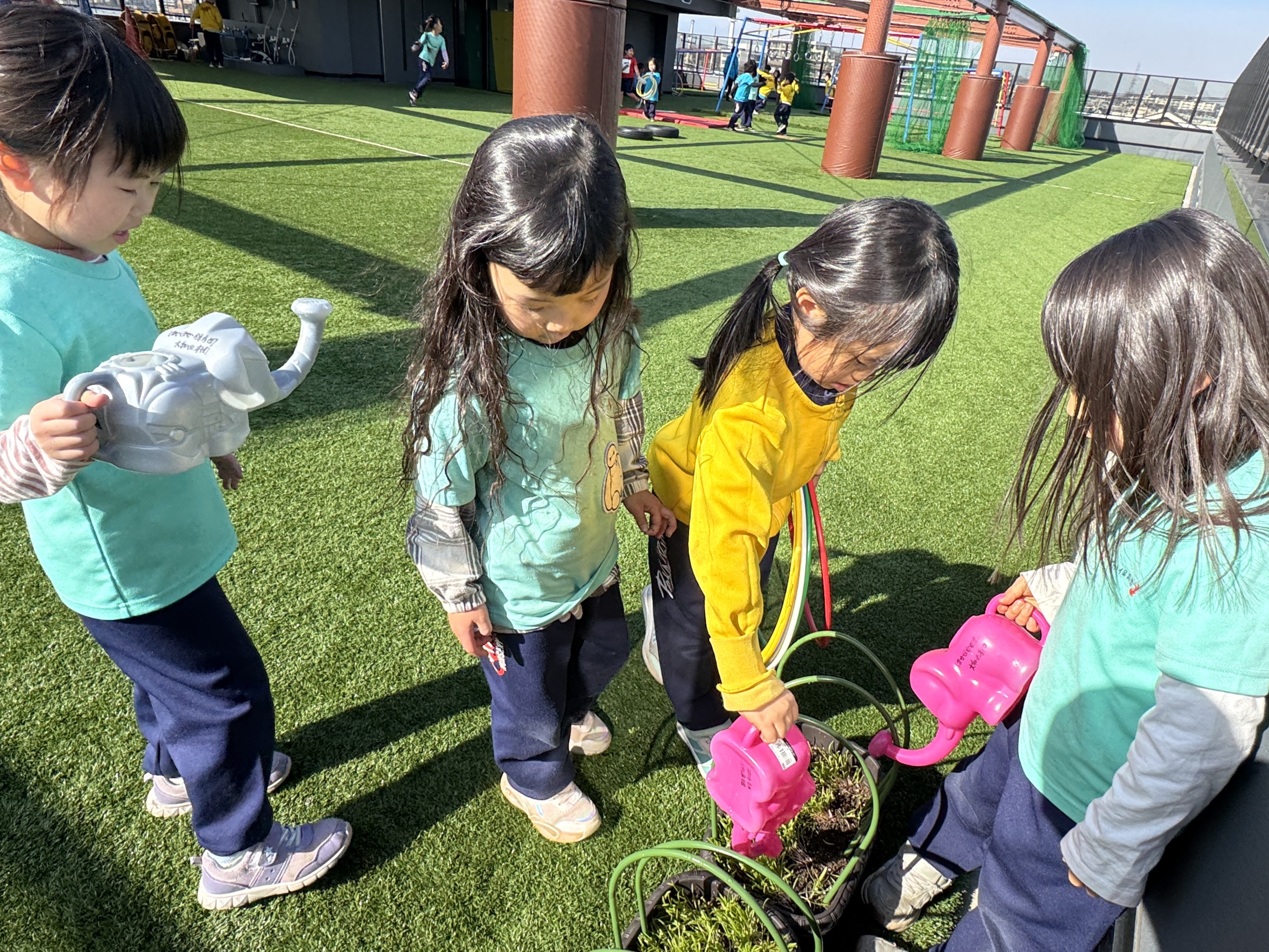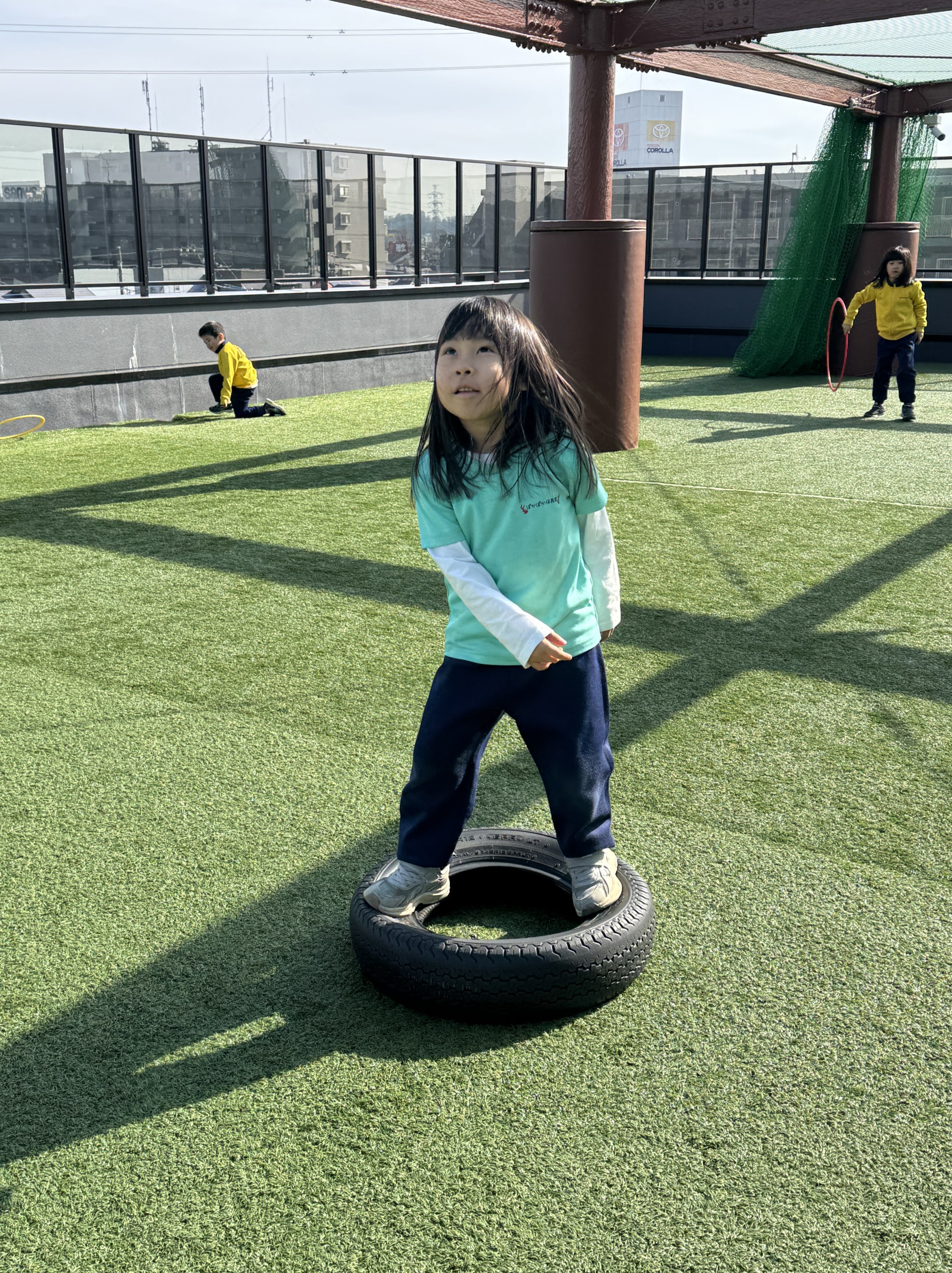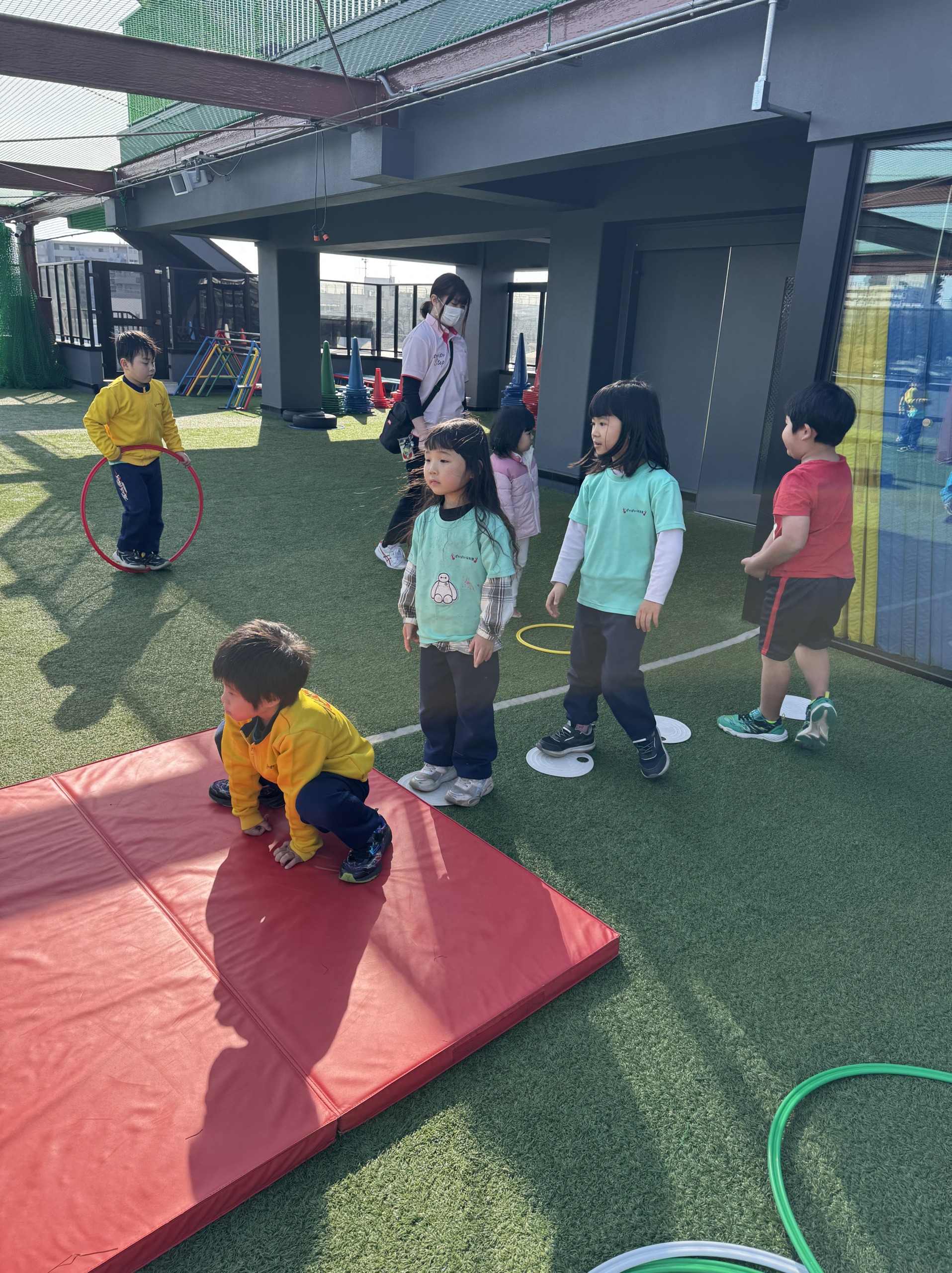 屋上では、【ラジオ体操】・【行進】・ぽかぽか保育園オリジナルソング『RASHI-KU』を歌いました♫