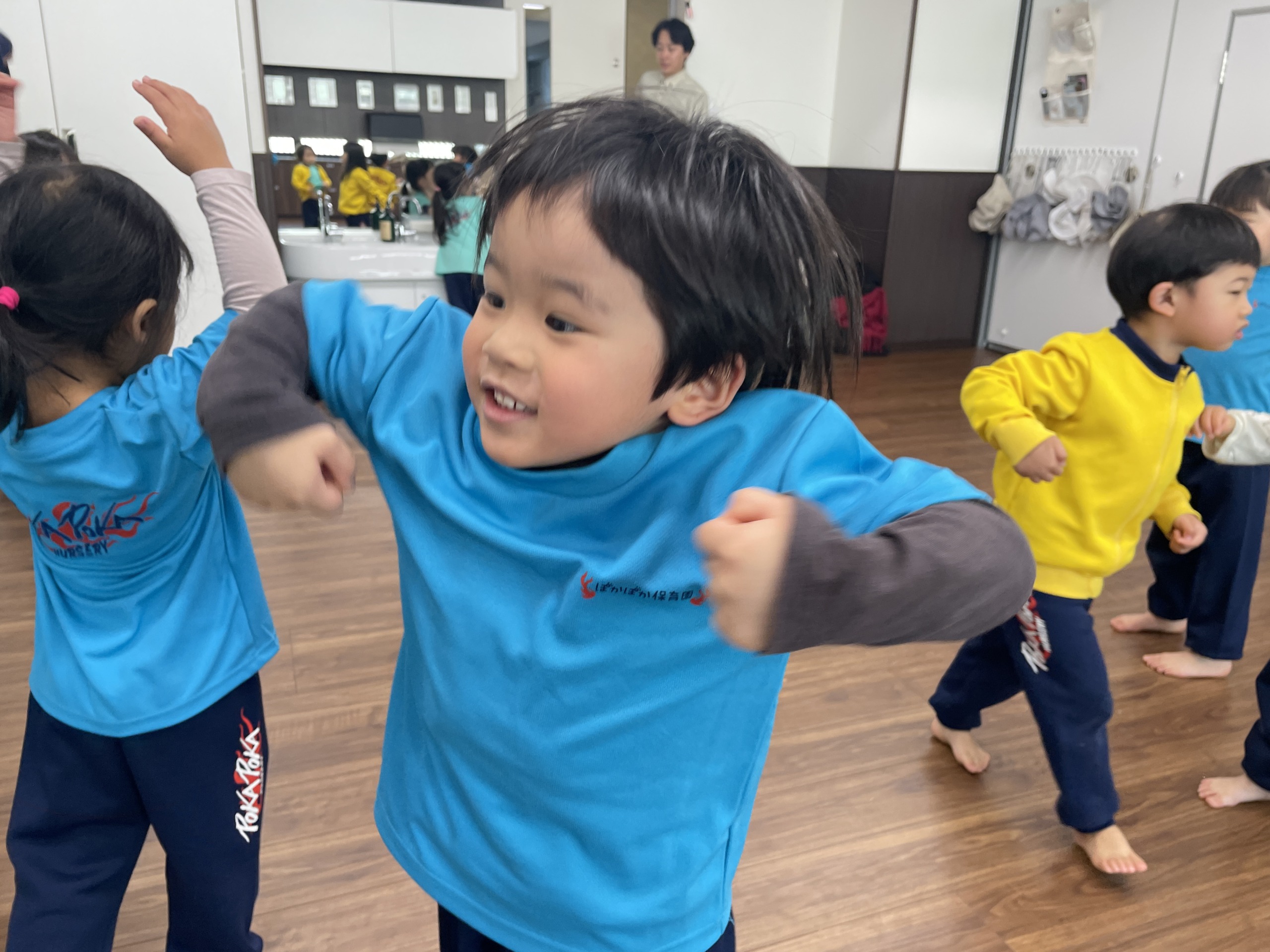 「からだ、あったかくなった?」と聞くと、「なったー!」