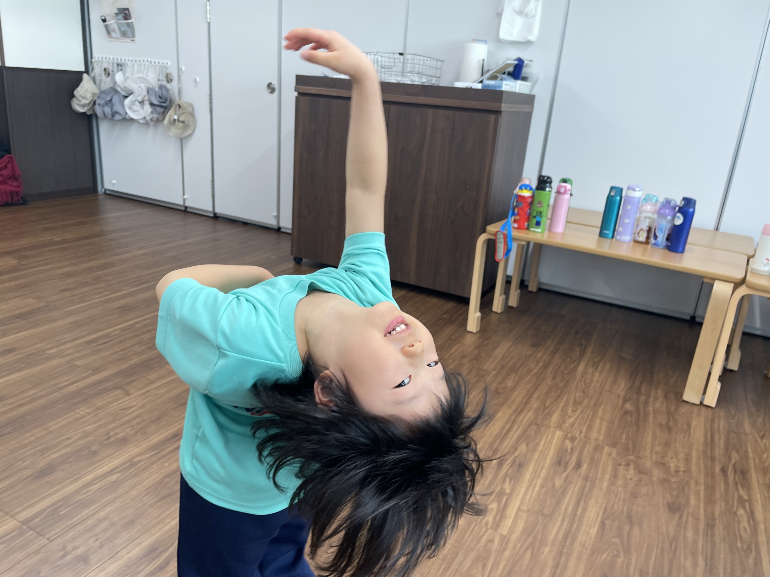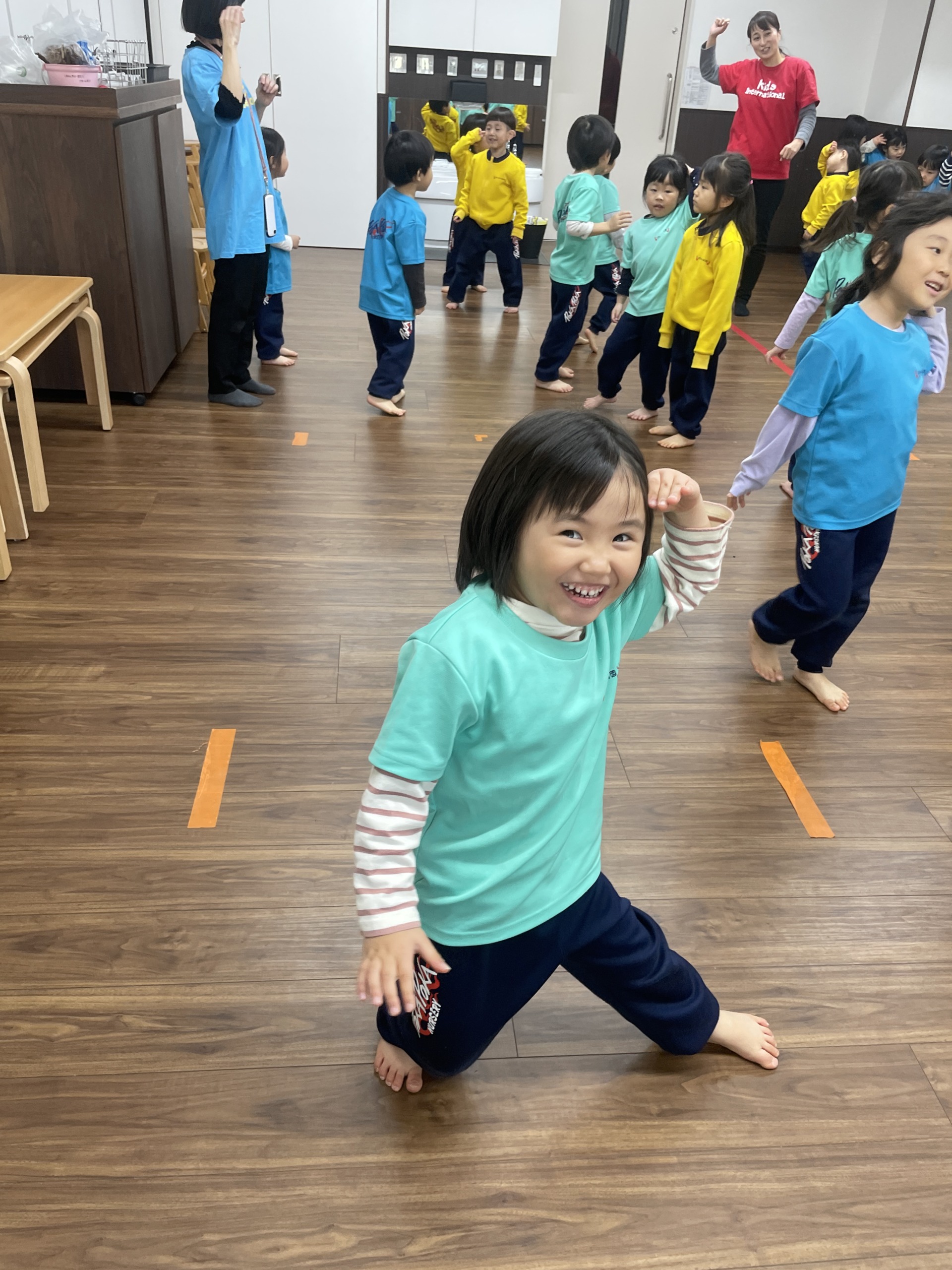 と元気な返事が返ってきました。今日はしなこの曲はお休みして、ドラえもんやM!LKの曲に合わせて踊りました。曲が変わるたびに表情も変わり、リズムに乗って体を動かす姿から、集中力や表現力の成長を感じました。