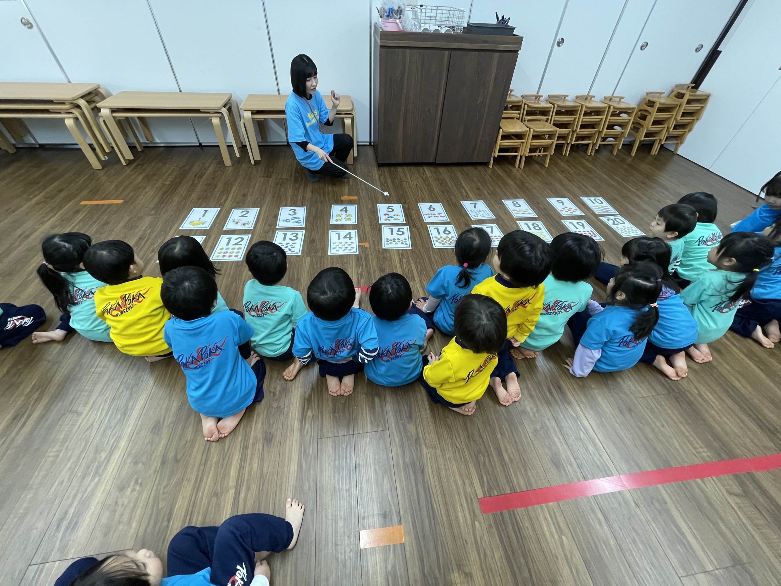 「ワン、ツー…」と1から20までを英語で発音すると、最初は少し照れながらも、だんだん声が大きくなっていきました。