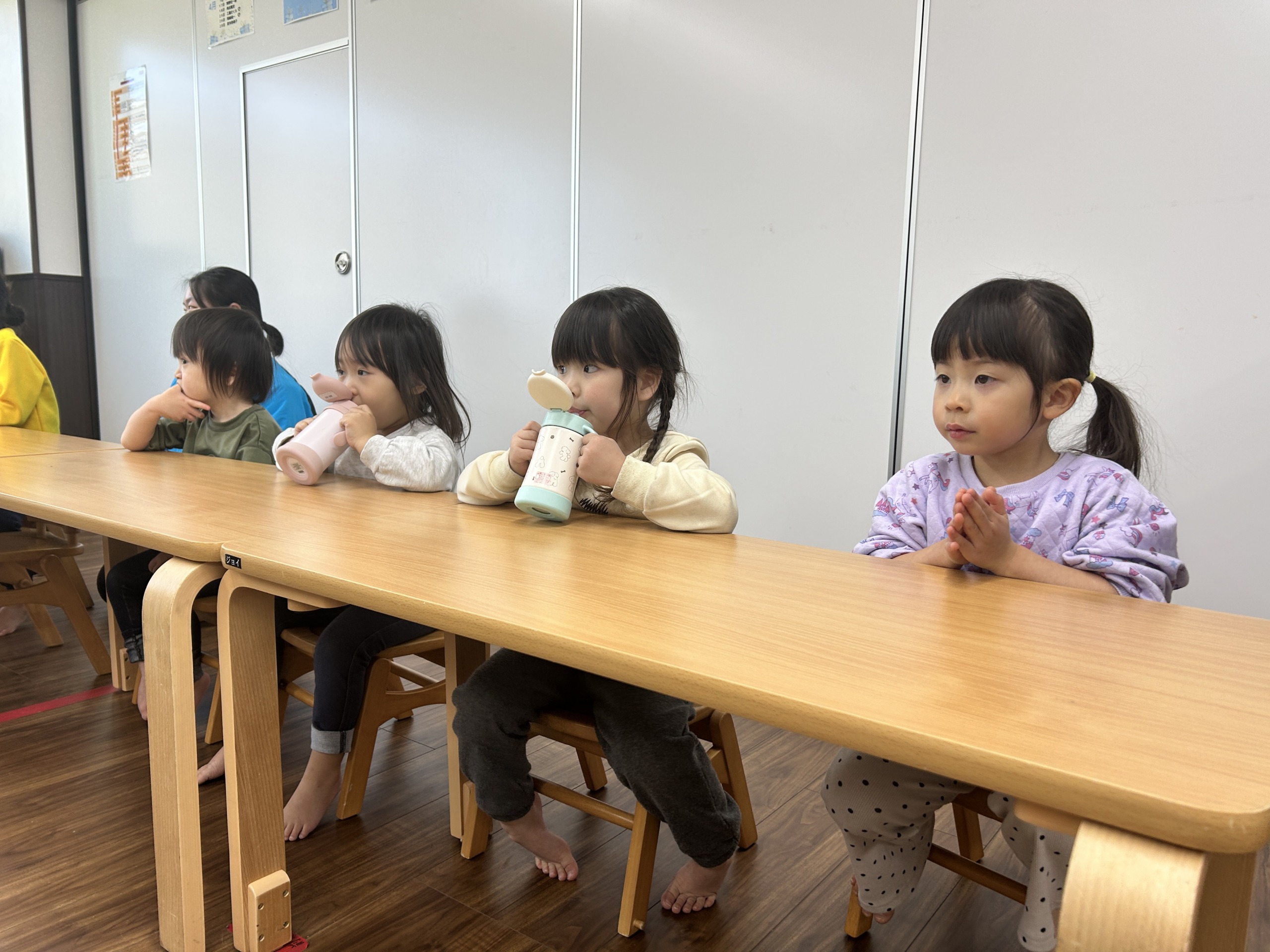 今日は、2歳児のお友だちが遊びにきてくれ、ラブチームさんで一緒に一日生活をしました♡