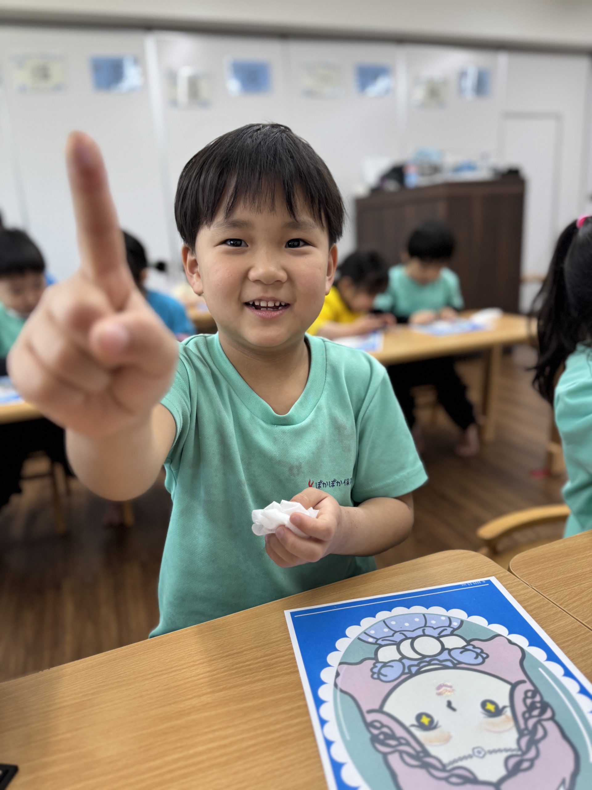 「一本指でやると上手に塗れるよ!」