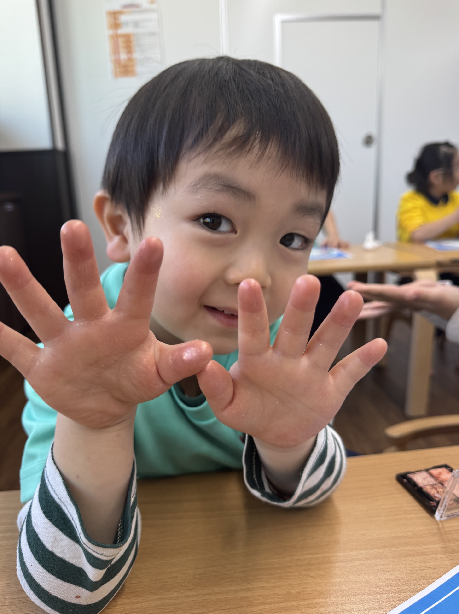 「ぼくの手までお化粧されちゃった~!」