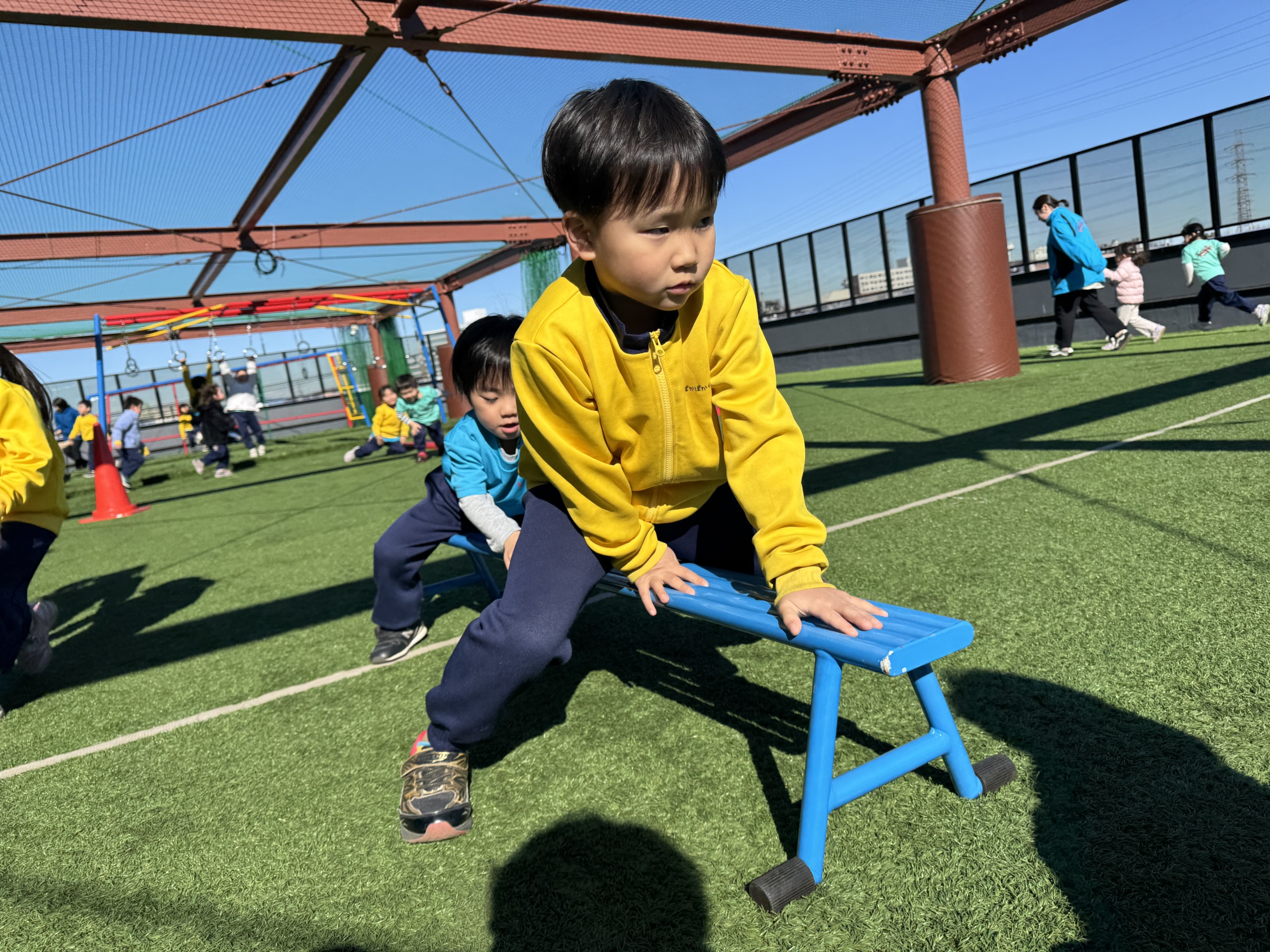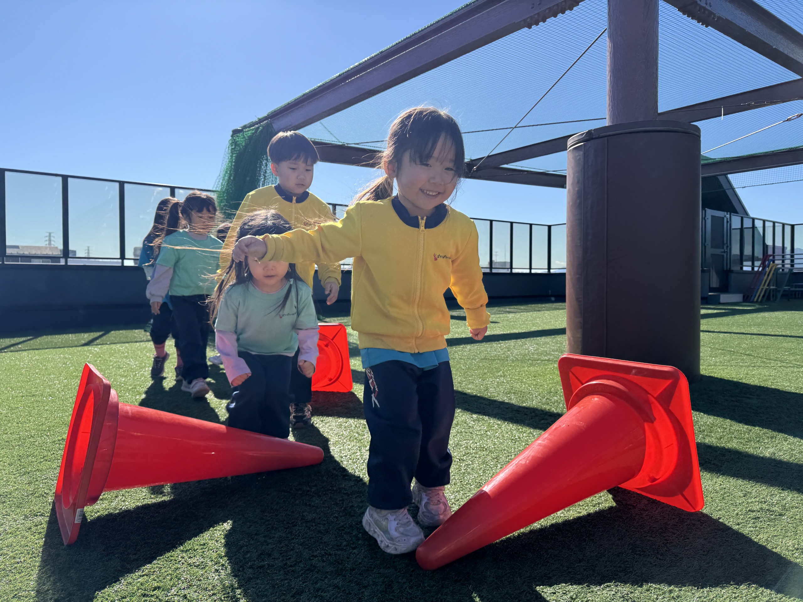 寒さに負けず、屋上遊びでたくさん身体も動かしました!