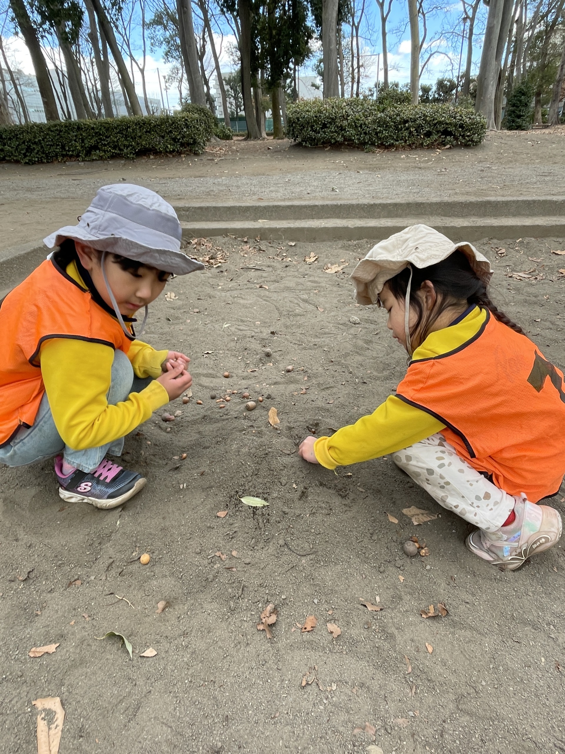 あ砂場でドングリ集めを楽しむ姿もあり、寒さを忘れるぐらい楽しい時間を過ごしました!