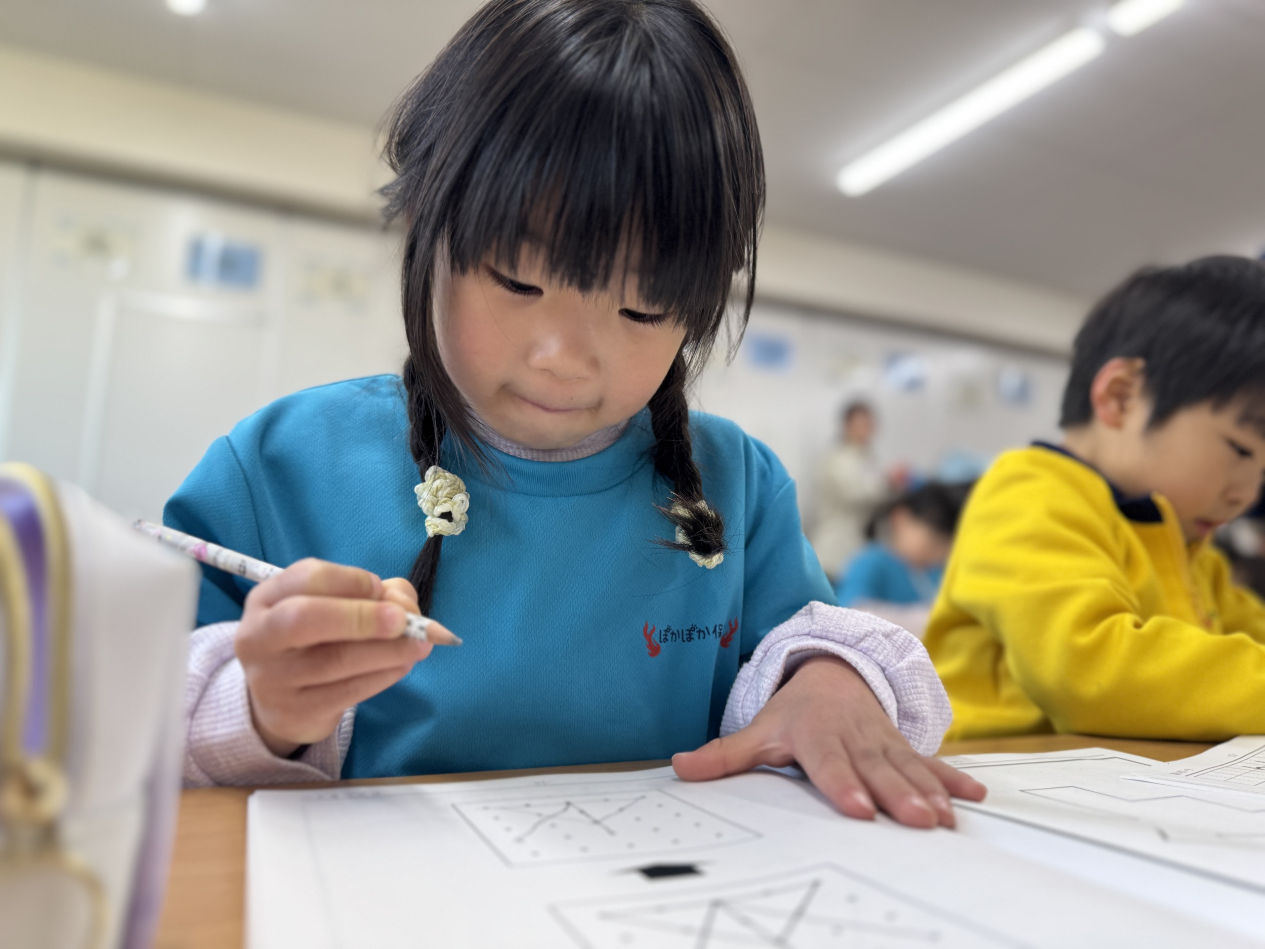 図形パズルや数のブロック操作にも挑戦。成功体験を積み重ねることで、算数への興味を引き出し、集中力を高めることができました。