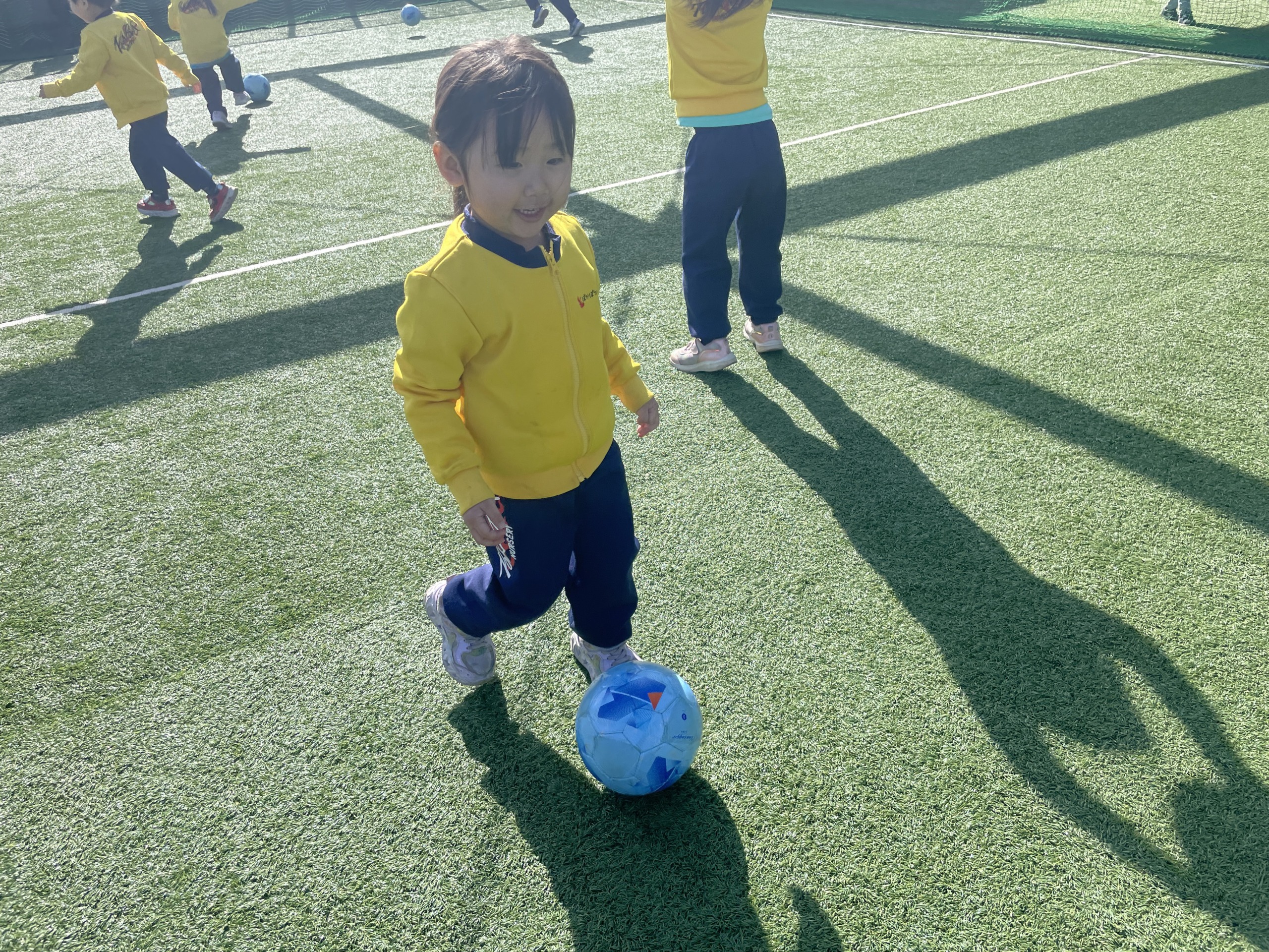 子ども達の中には、友達同士でパスをしている姿も見られました♡