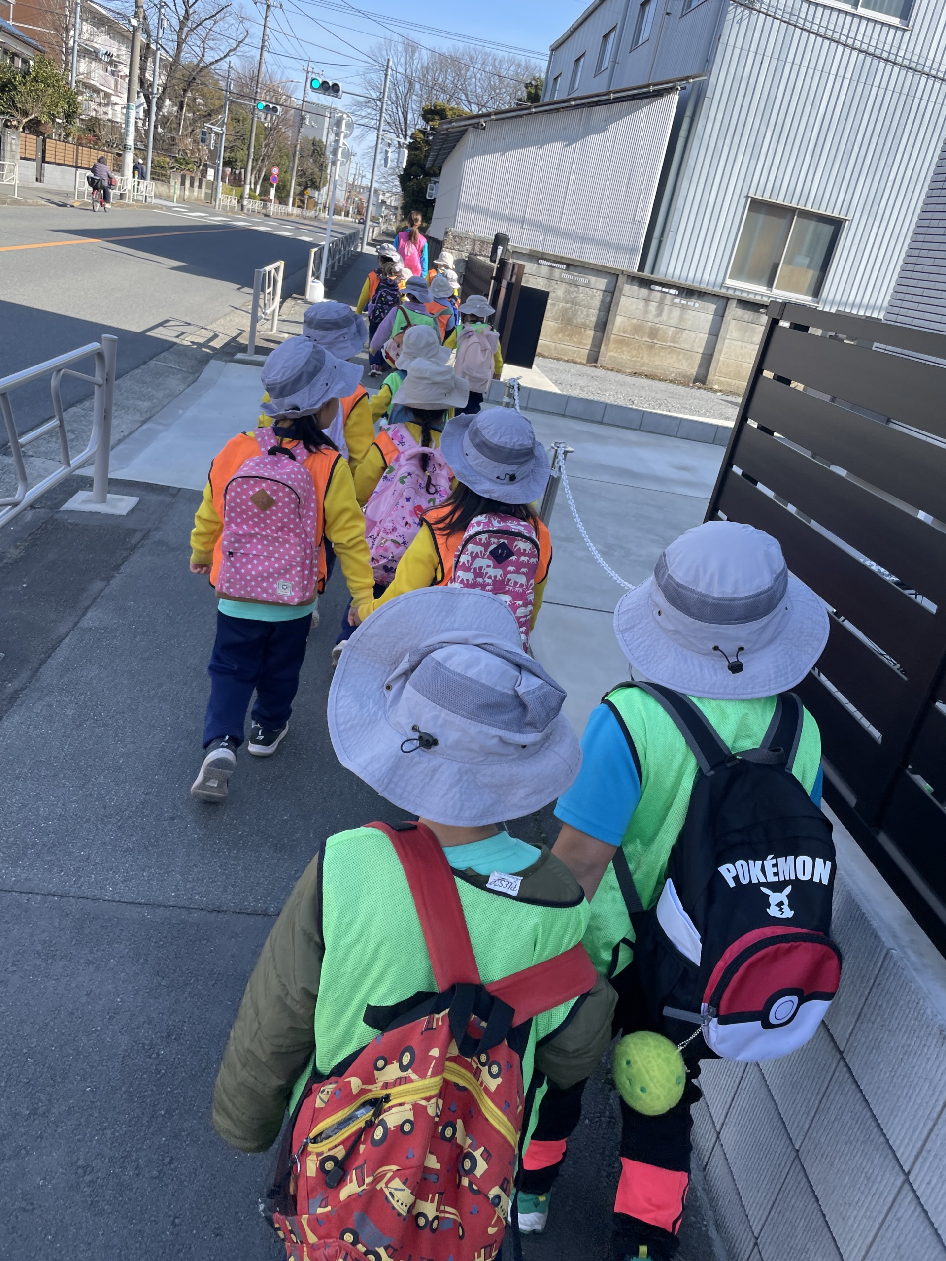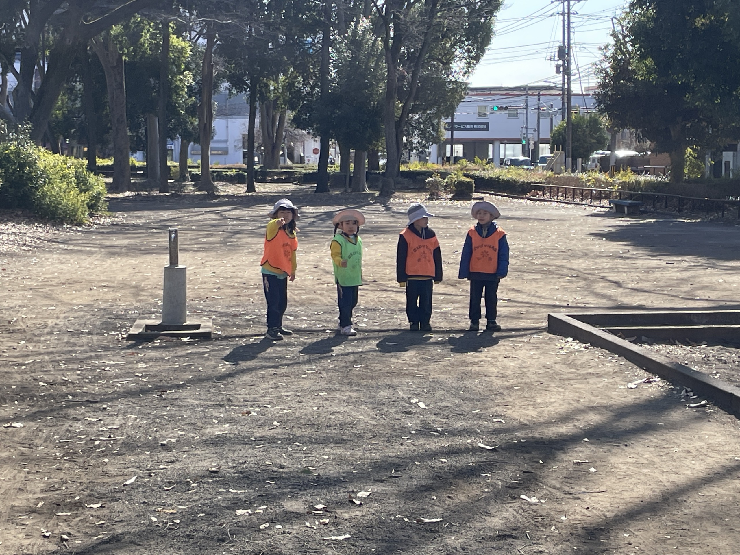 一方、4歳児・5歳児はドリームのお友達と一緒に公園へ出かけました。普段はあまり一緒に遊ぶことのないメンバーということもあり、「今日は一緒に行くんだよ」と伝えると、「楽しみ!」「なにして遊ぼうかな」と期待の声がたくさん聞こえてきました。歩いて公園まで向かう道中も、交通ルールを意識しながらしっかり歩く姿が見られ、日々の積み重ねを感じました。