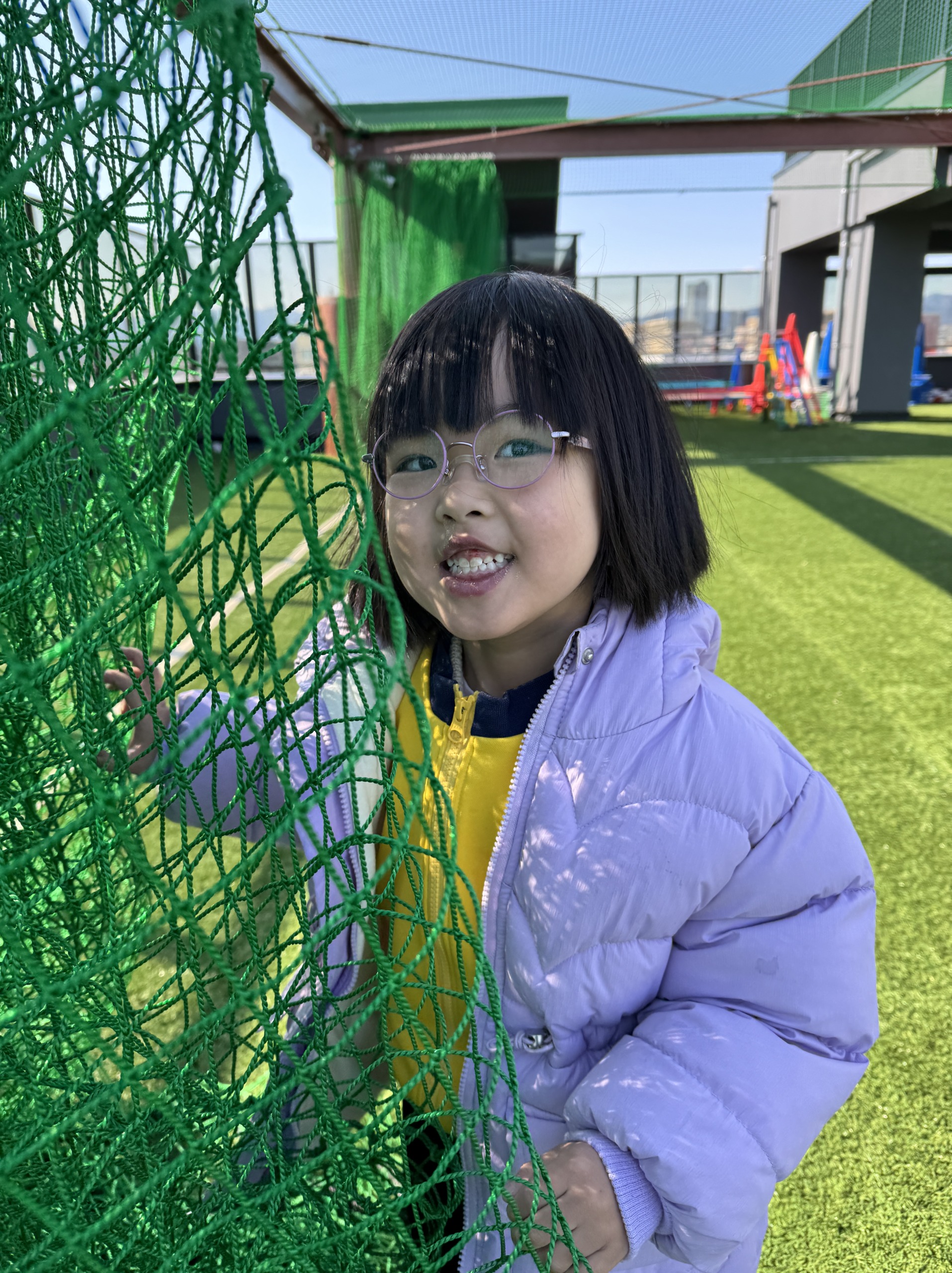屋上では「一緒に走ろう」「次はこっちだよ」と声を掛け合いながら遊ぶ姿が見られ、年齢やクラスが違っても、遊びを通してつながっていく様子がとても微笑ましかったです。安全に配慮された環境の中で、思いきり体を動かせる屋上遊びは、子どもたちにとって大切な時間です。