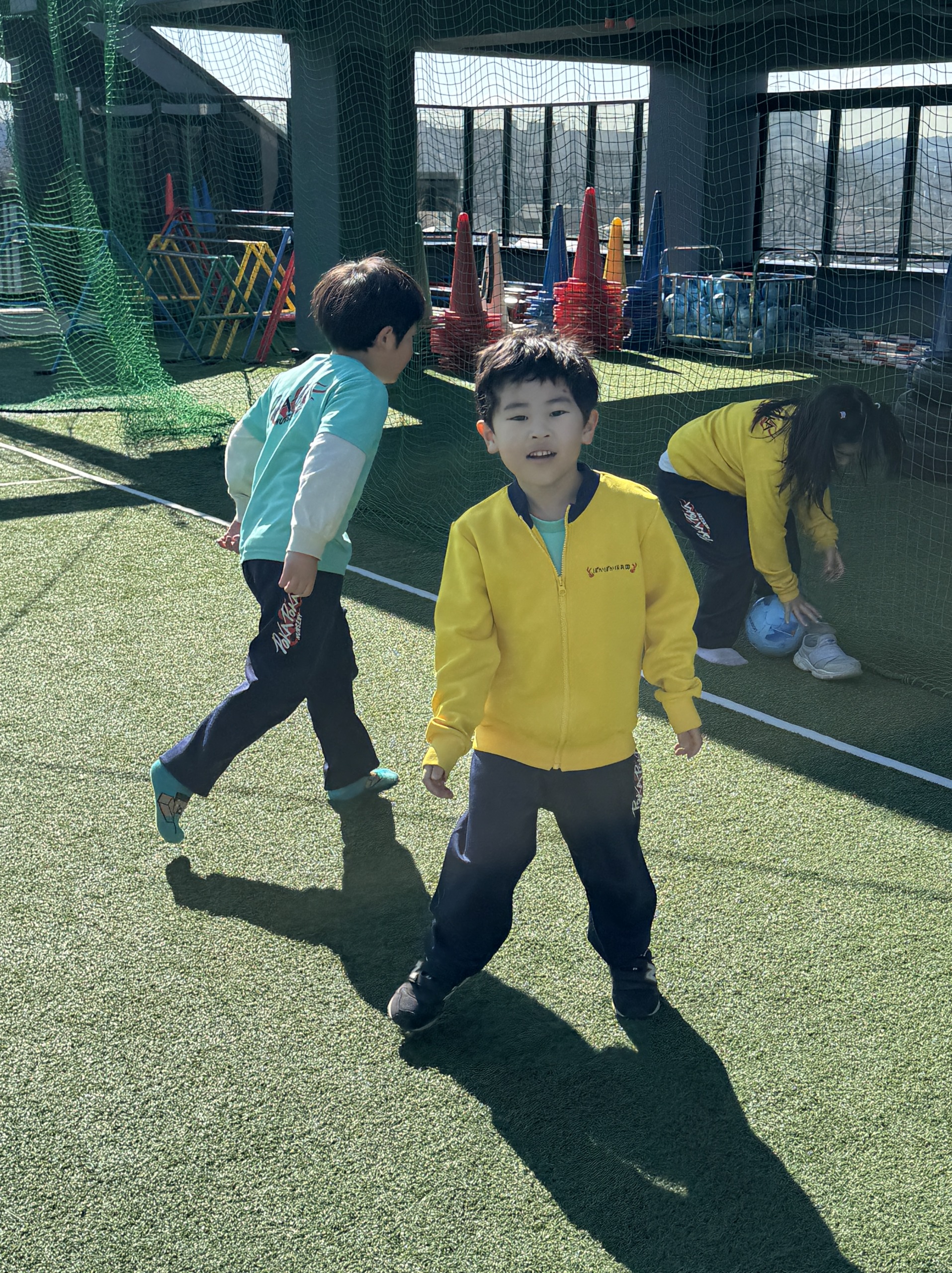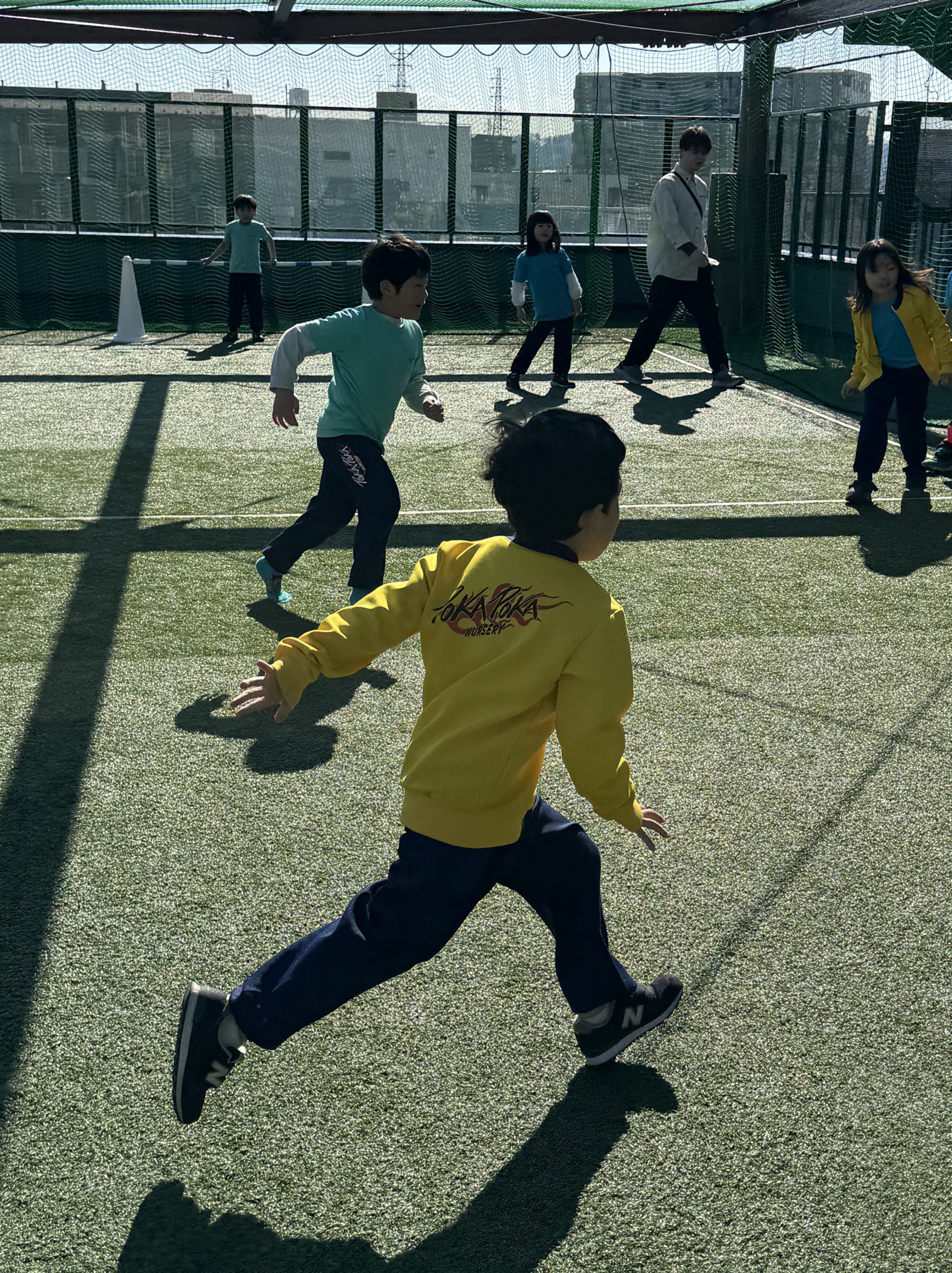 その後は屋上へ行き、好きな遊びの時間。「サッカーやりたい人ー!」の声に、