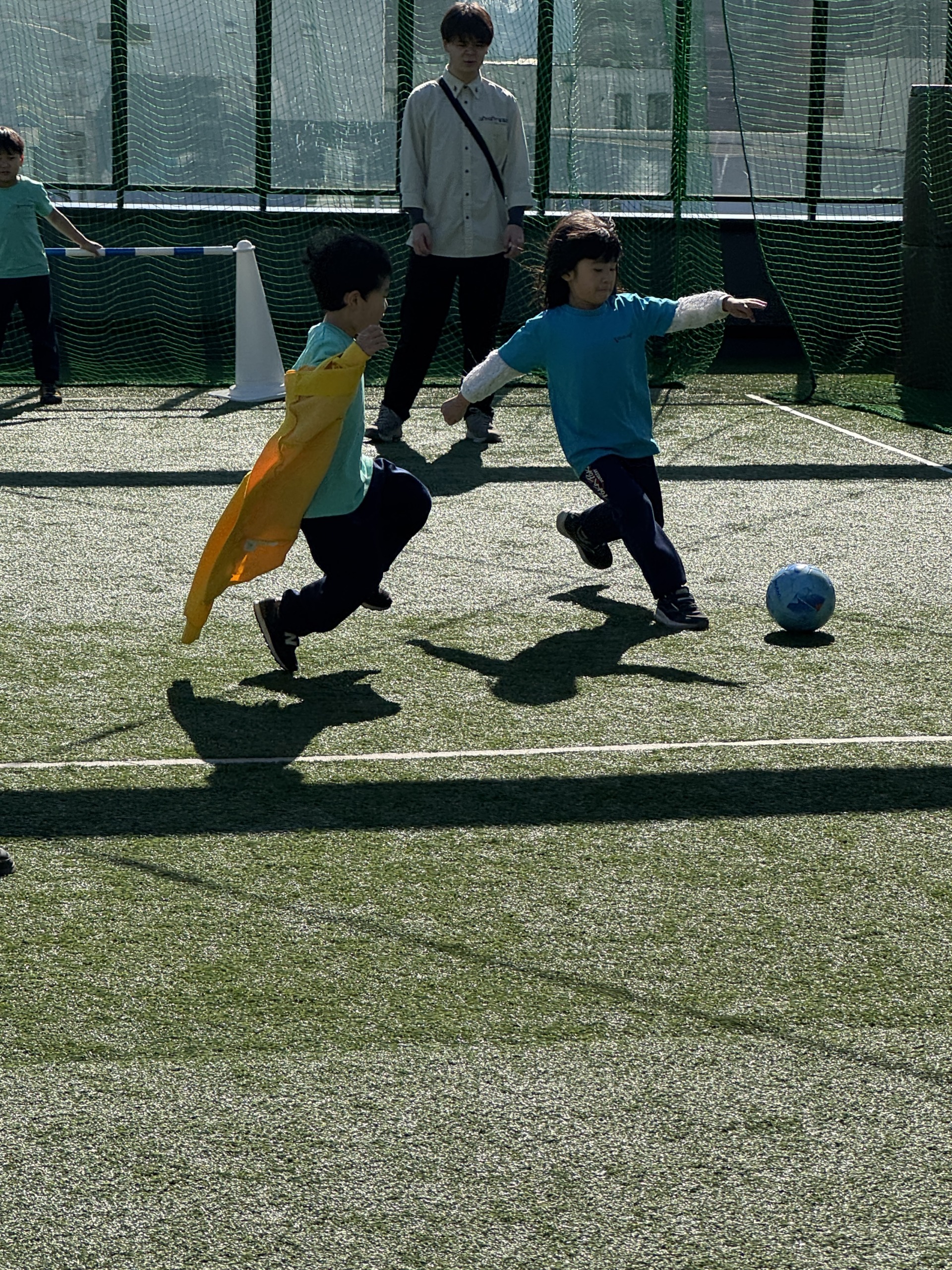 「ナイス!」「次パスちょうだい!」と声を掛け合いながら、思いきり体を動かしていました。