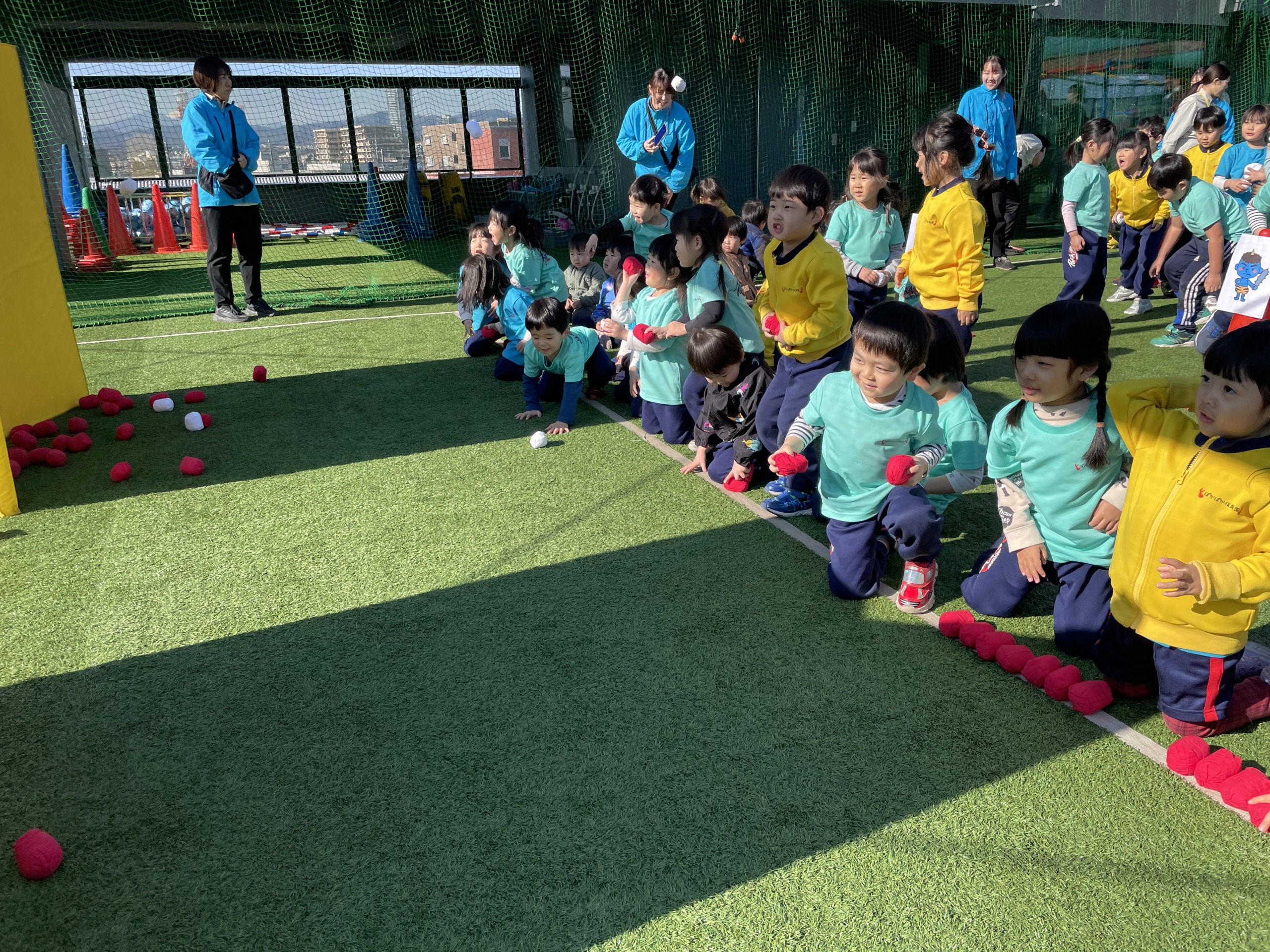 そして屋上で鬼退治の練習も行いました。