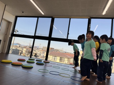 5歳児クラスでは、【リズムの道】のレベルがググっと上がりました!