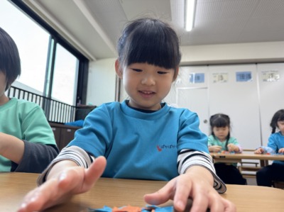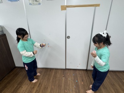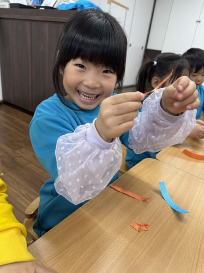 自分たちで紙テープをちぎって、詰めたら完成!!