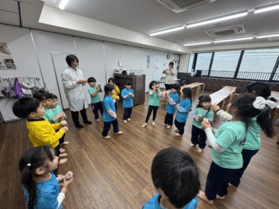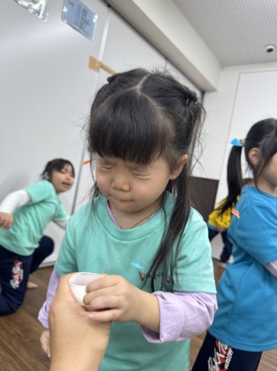 みんなで円になって、パンッ!と鳴らしました。