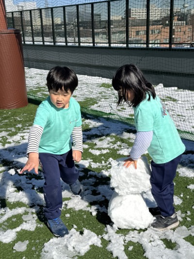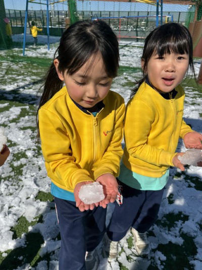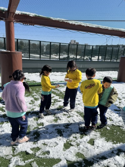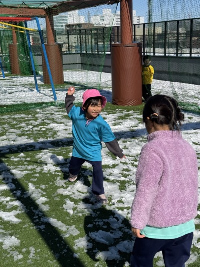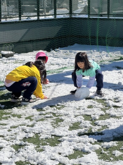冷たい雪の感触を全身で味わい、お友達と一緒に協力して遊ぶ中で、心も体もポカポカになった子どもたち。
