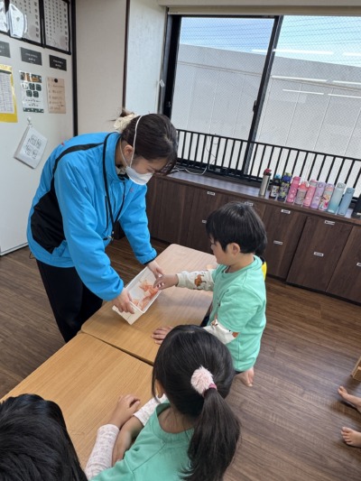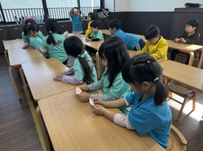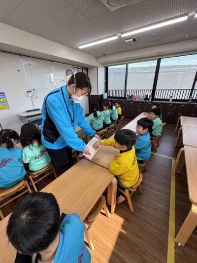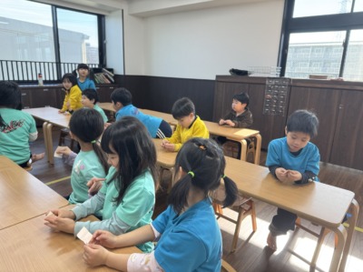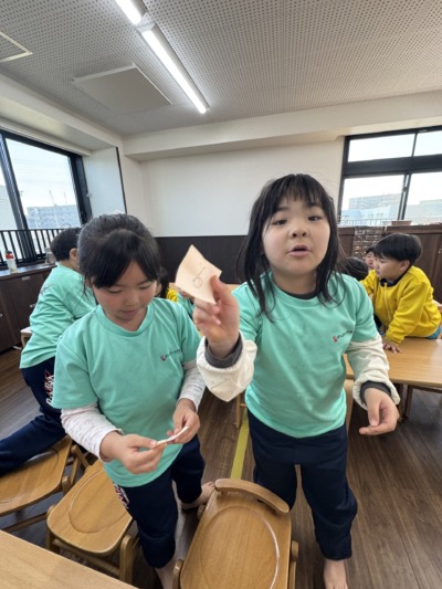 自分の数字と友達の数字を見比べながら、「〇番だった!」「私は〇番だよ!」と、子どもたち同士で数字を確認し合っていました。