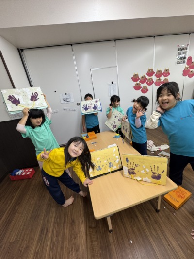 それぞれ好きなように絵を描いたり、手形をとったり、ハサミを使って白い折り紙を切り、それを糊で貼って友だちと仲良く過ごす姿が見られました!