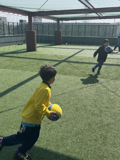 今度は屋上で走ったり、ボールで遊ぶよー!