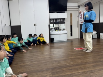 今日は合唱の練習もしたよ。「お腹から声を出してみようか」と言うと、両手をお腹に当てて一生懸命に歌う姿がかわいい。