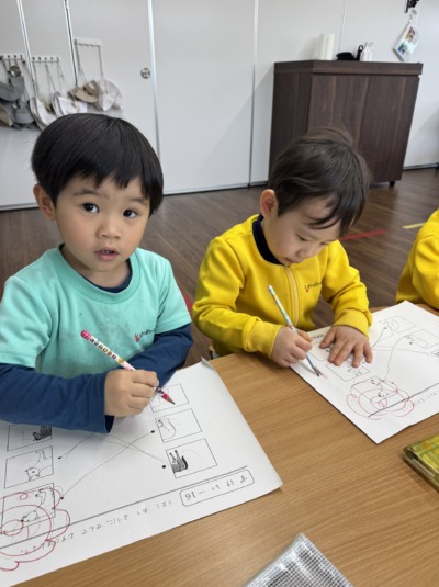・お友だちと刺激し合いながら、集中して取り組んでいました。