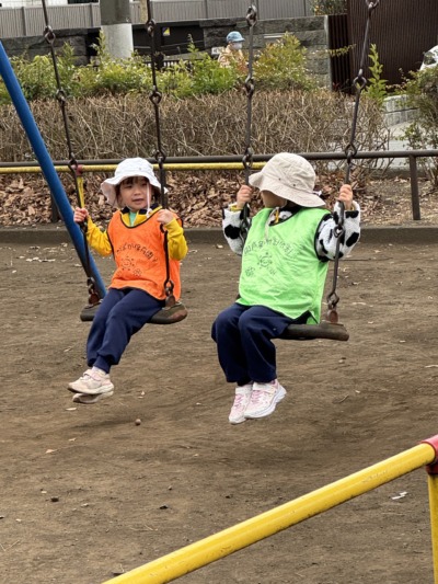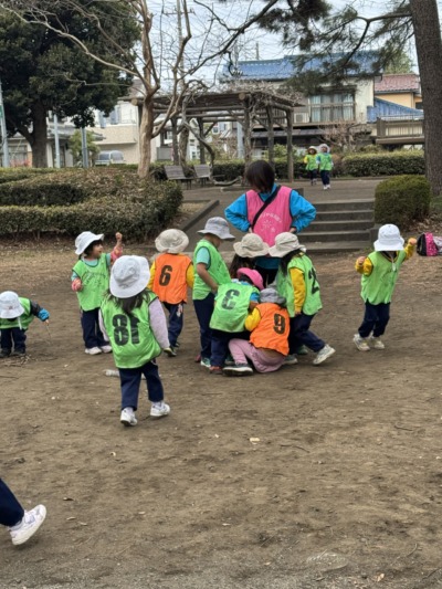 少し歩くと、「鬼ごっこしよう!」という声が上がり、今度は広場で鬼ごっこが始まりました。「まてまてー!」「つかまらないよ!」と全力で走る子どもたち。走るスピードもぐんと伸び、体力の成長を感じます。途中で転びそうになっても、自分で体勢を立て直し、また走り出す姿に頼もしさを感じました。