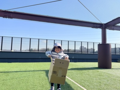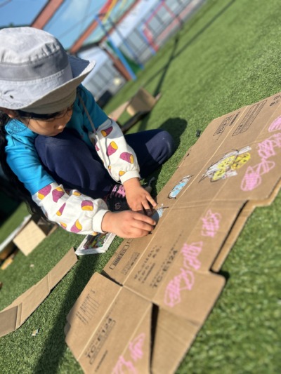 屋上では段ボールを広げ、お絵描きを楽しみました。