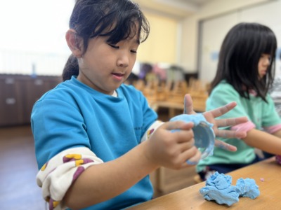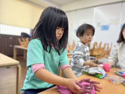 「ぼくは飛行機つくる!」など想い思い想像を広げながら、のびのびと表現する姿がとても印象的でした。