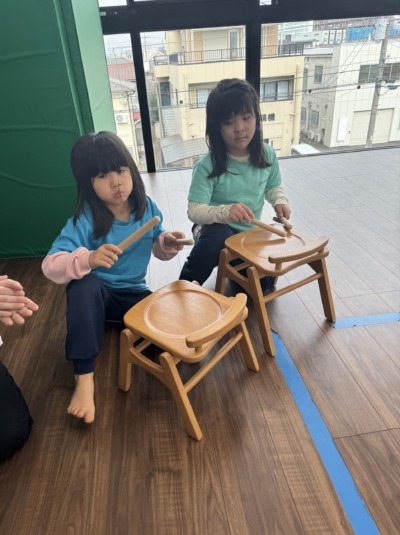 「た・ま・ご・や・き」「や・き・と・り」のリズムに合わせて、素敵な音を出して楽しみました。