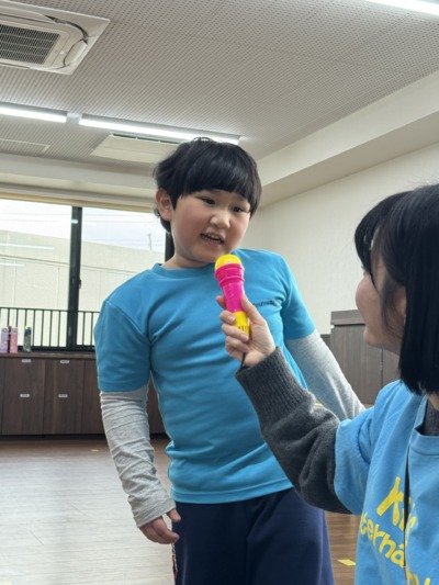 「My name is 〇〇.」と、少し緊張しながらも堂々と前に立つ子どもたち。