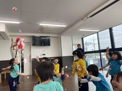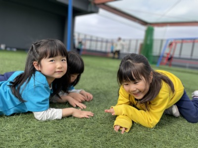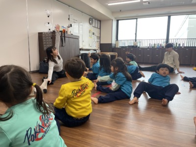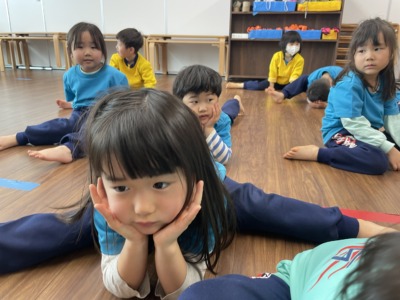 音楽、運動、英語、ダンスと盛りだくさんの一日でしたが、どの時間も子どもは目を輝かせて取り組んでいました。年長児の姿を見て育ち、その姿をしっかり受け継ごうとする3歳児の成長に、これからの可能性を強く感じます。