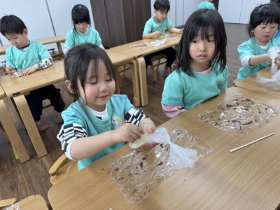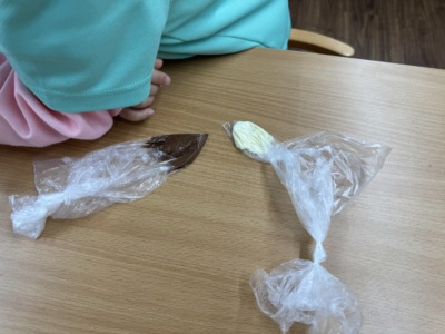「なんで固まるの?」「お家のチョコと同じかな?」と次々に疑問を口にしながら、自分の手でチョコに触れたり、固まり具合を比べたり。「サイエンス、楽しいね!」という声も飛び出しました。