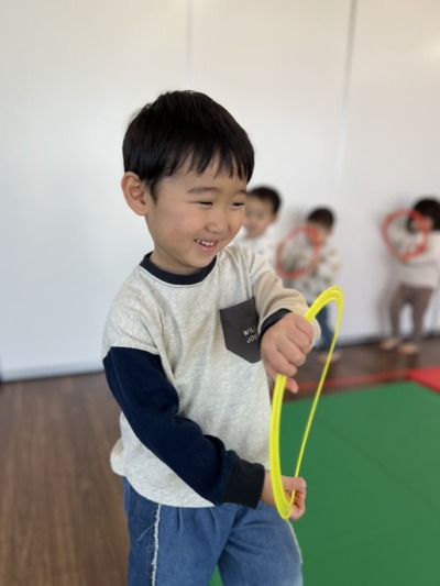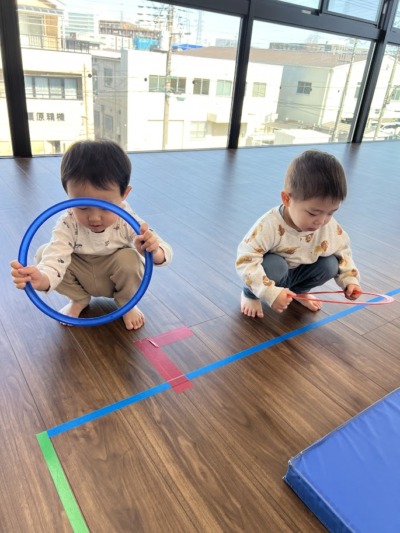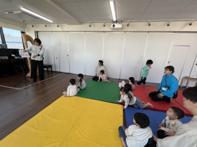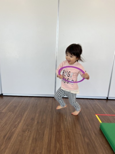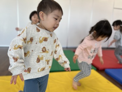 上り坂、下り坂、細い道、踏切、色んな音に反応しながら動くリトミックを行いました!