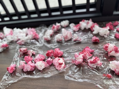 色付けした桜の花を木の周りに咲かせます♪ラブチームの桜、満開にとても綺麗に咲き誇りました☆