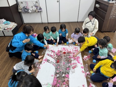 昨日、今日の日の為に桜の花をみんなで作ったり☆画用紙に大きな桜の木を描いて、クレヨンで色を塗ったり、みんなで取り組みました🌸