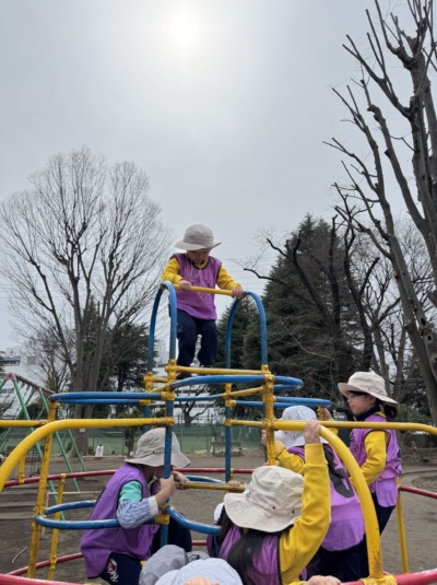 公園ではジャングルジムによじ登ったり、ブランコ、追いかけっこと寒くても元気いっぱいな可愛いお友だち♡来週も元気に登園してきてね!