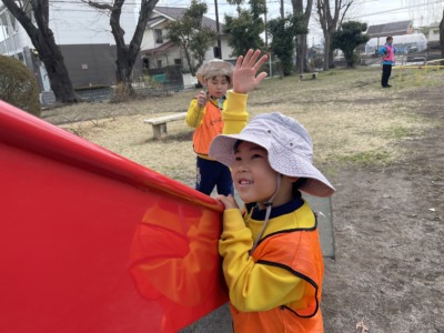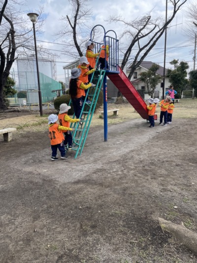友だちと手をつなぎながら、交通ルールを守って歩くことで、安全への意識だけでなく、協調性や、地域社会との関わりについても学ぶことができました。公園に到着すると、子どもたちの目はキラキラ!「わーい!」と歓声を上げ、嬉しそうな様子☆