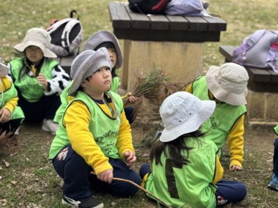 友だち同士で協力してエビフライに見立てた葉っぱや木の枝探し、大好きな先生に食べさせたいと一人で頑張って、わさびに見立てた木の枝探しに奮闘したりと、子ども達は疲れ知らずです☆