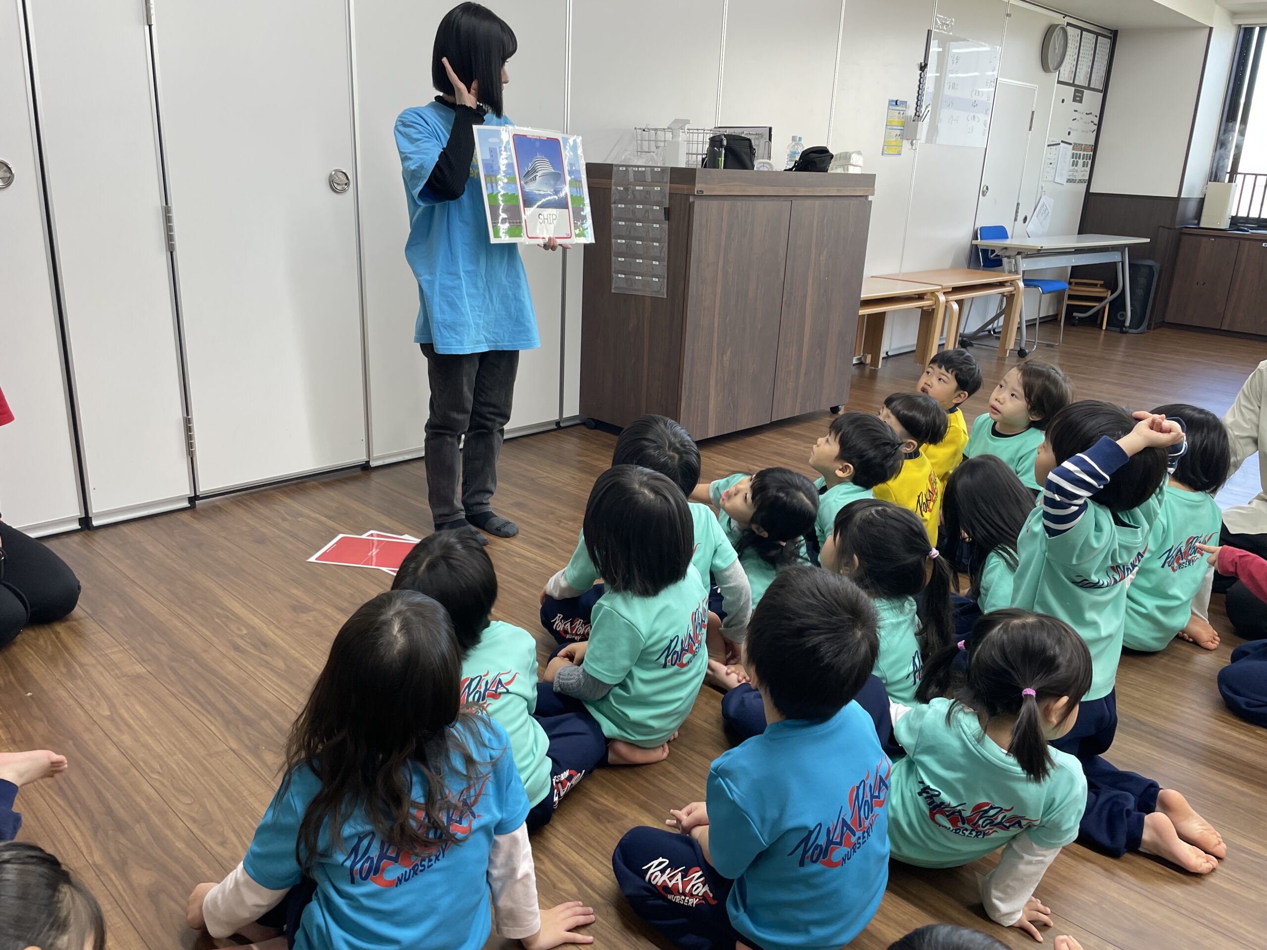 英語の歌とゲームで楽しく学びました。