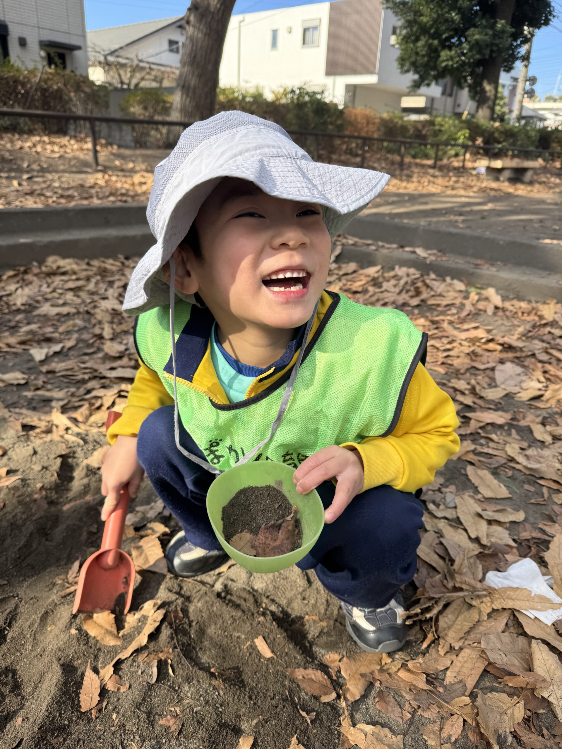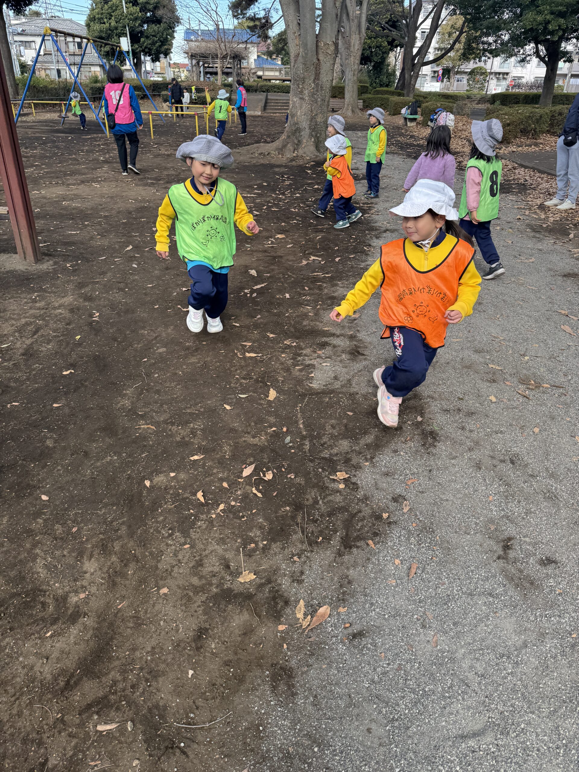 冬の公園ならではの冷たい風や、落ち葉の感触を楽しみながら思いきり体を動かし、