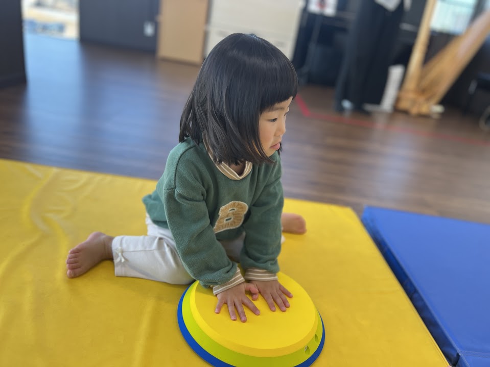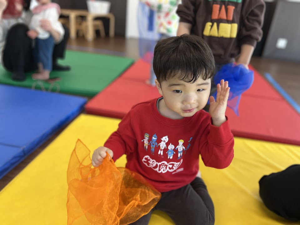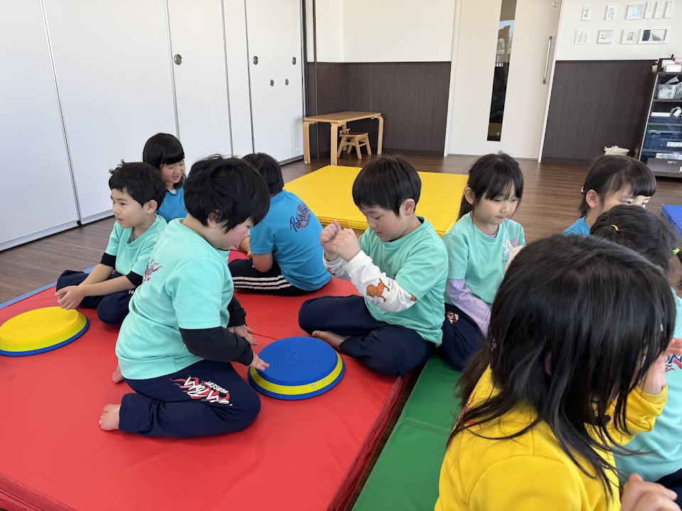 赤はだるまさんと同じ色だね!と言うとだるまさんのリズムを聞き取って赤いマットに移動出来ました!