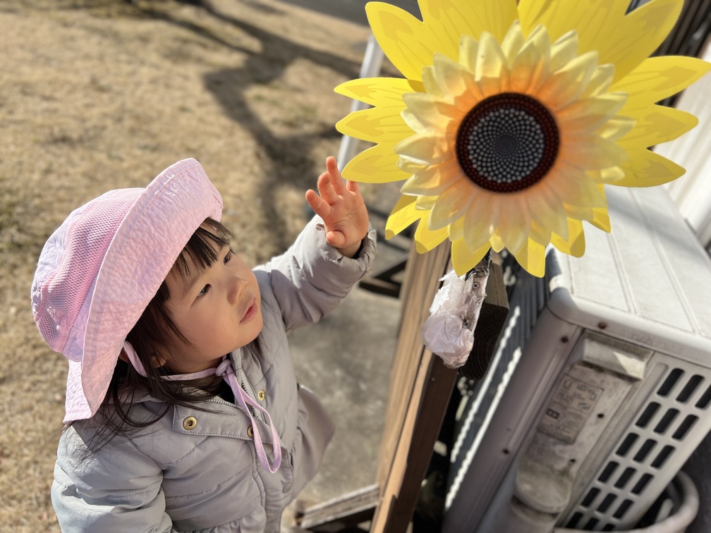 公園では、風車がくるくる回っているのを「あ!」と指差して眺めたり、