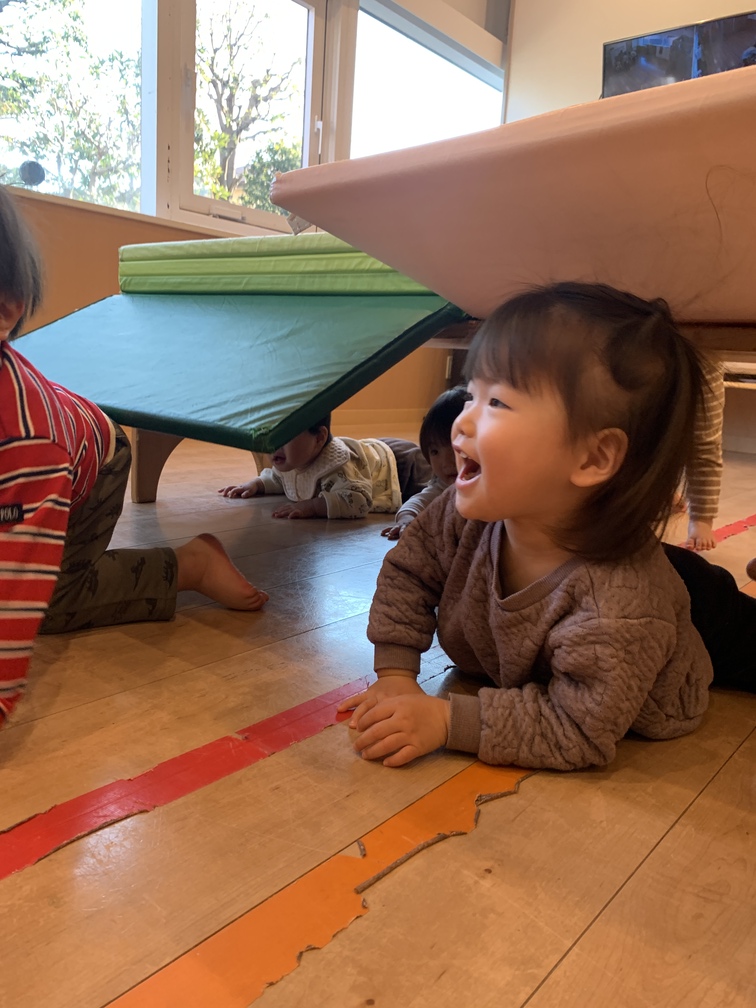 その後は、テーブルのトンネルをくぐって遊びました。