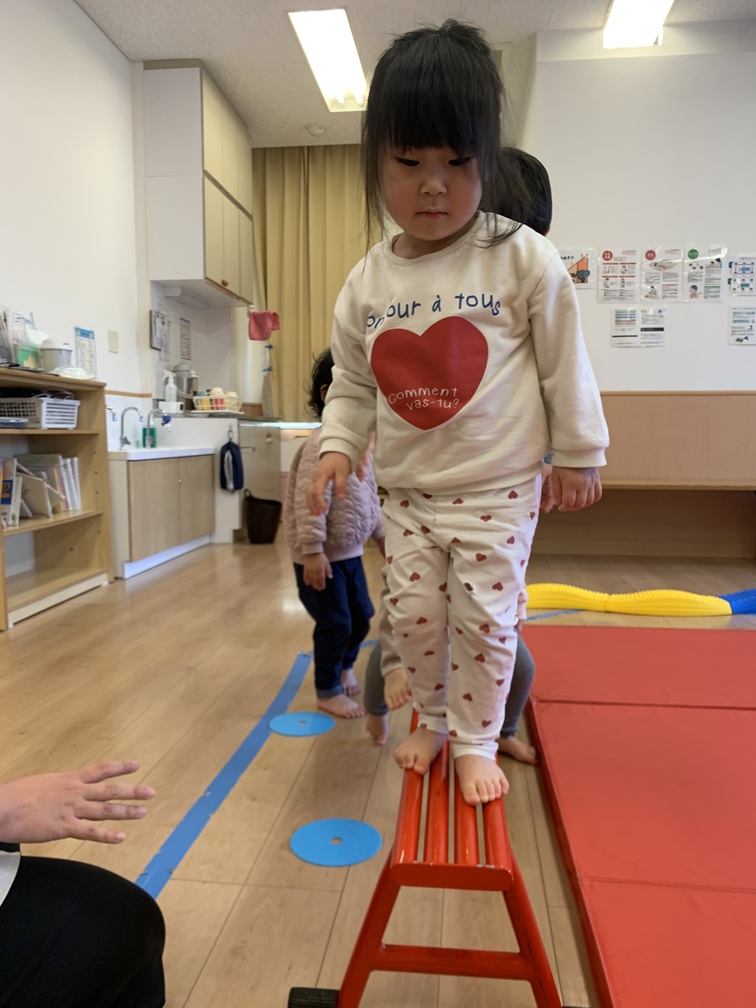 「あと少し!すごいね!」と声をかけると、みんな集中してバランスを取りながら進み、