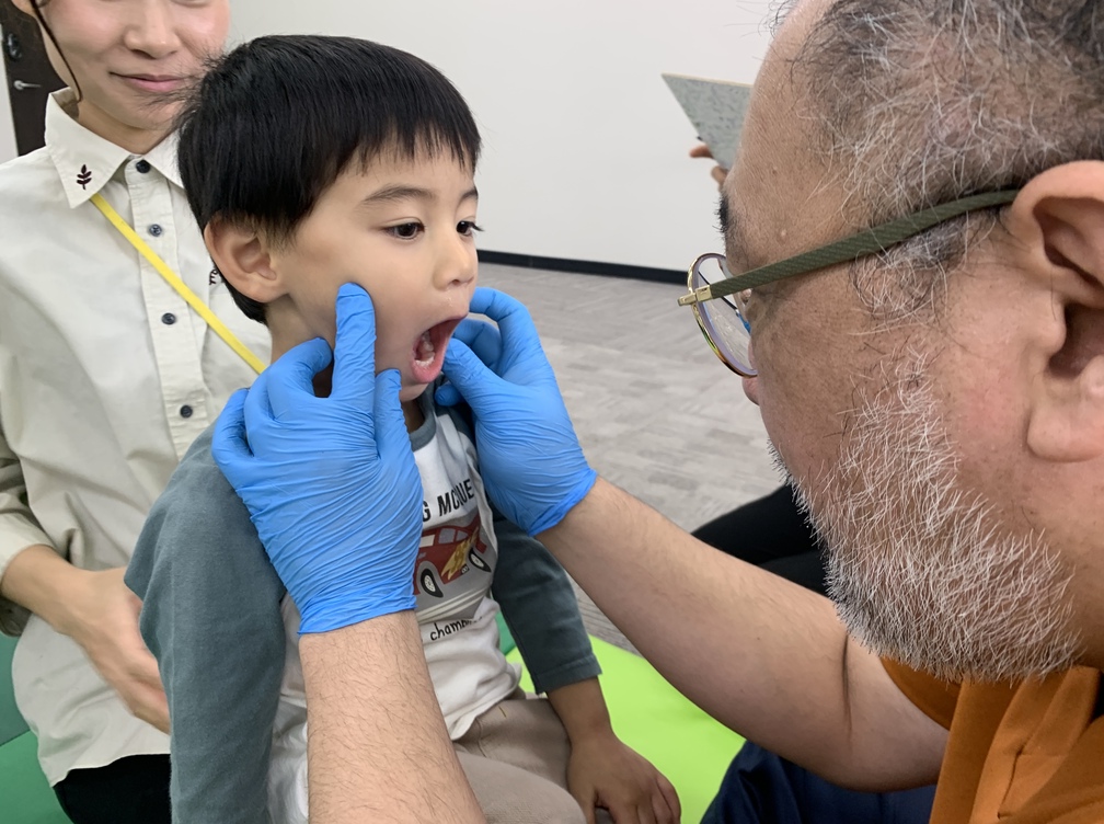 先生が優しく「大丈夫だよ、お口をあーんしてごらん」と声をかけると、