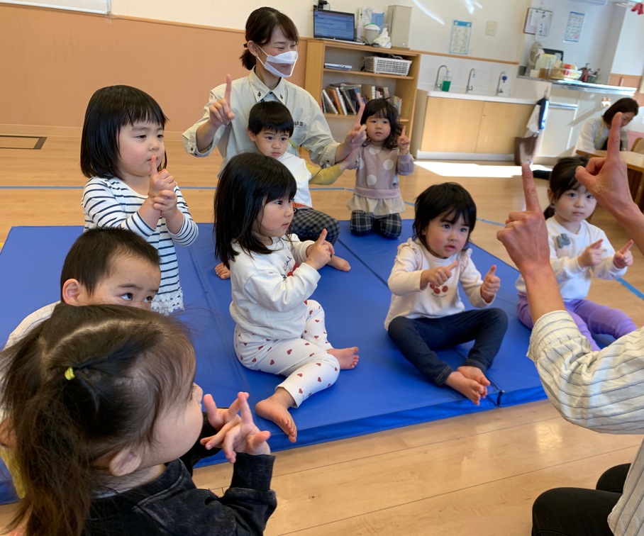 まずは手遊びで呪文を唱えて変身♪
