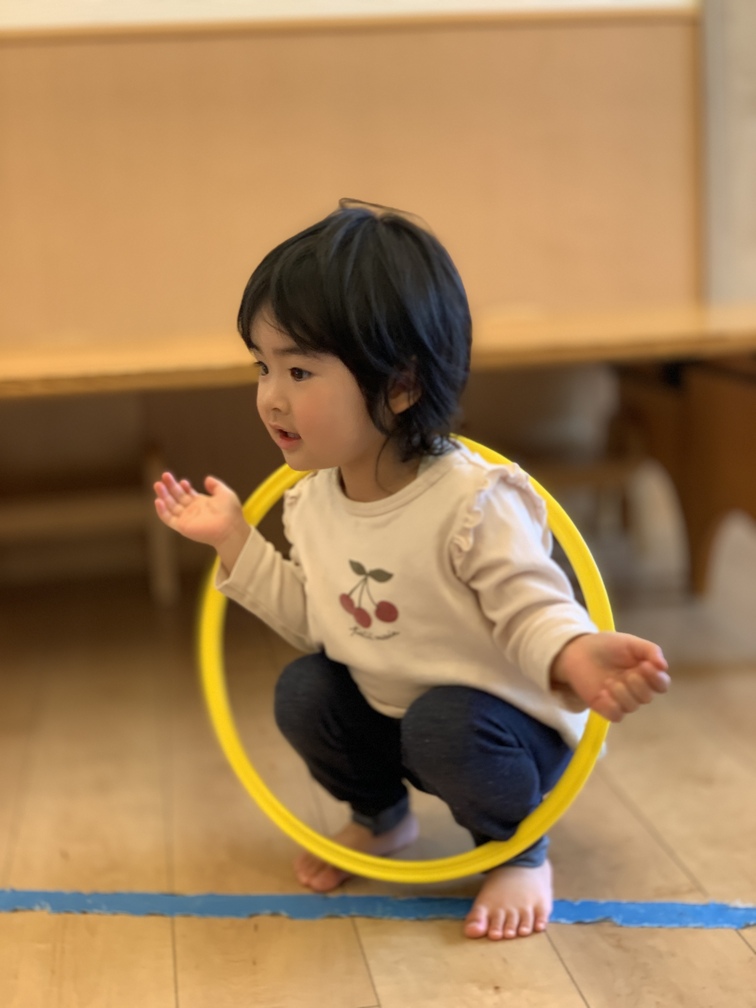 フープでは、ドレミの高低を感じながら輪くぐりの術!
