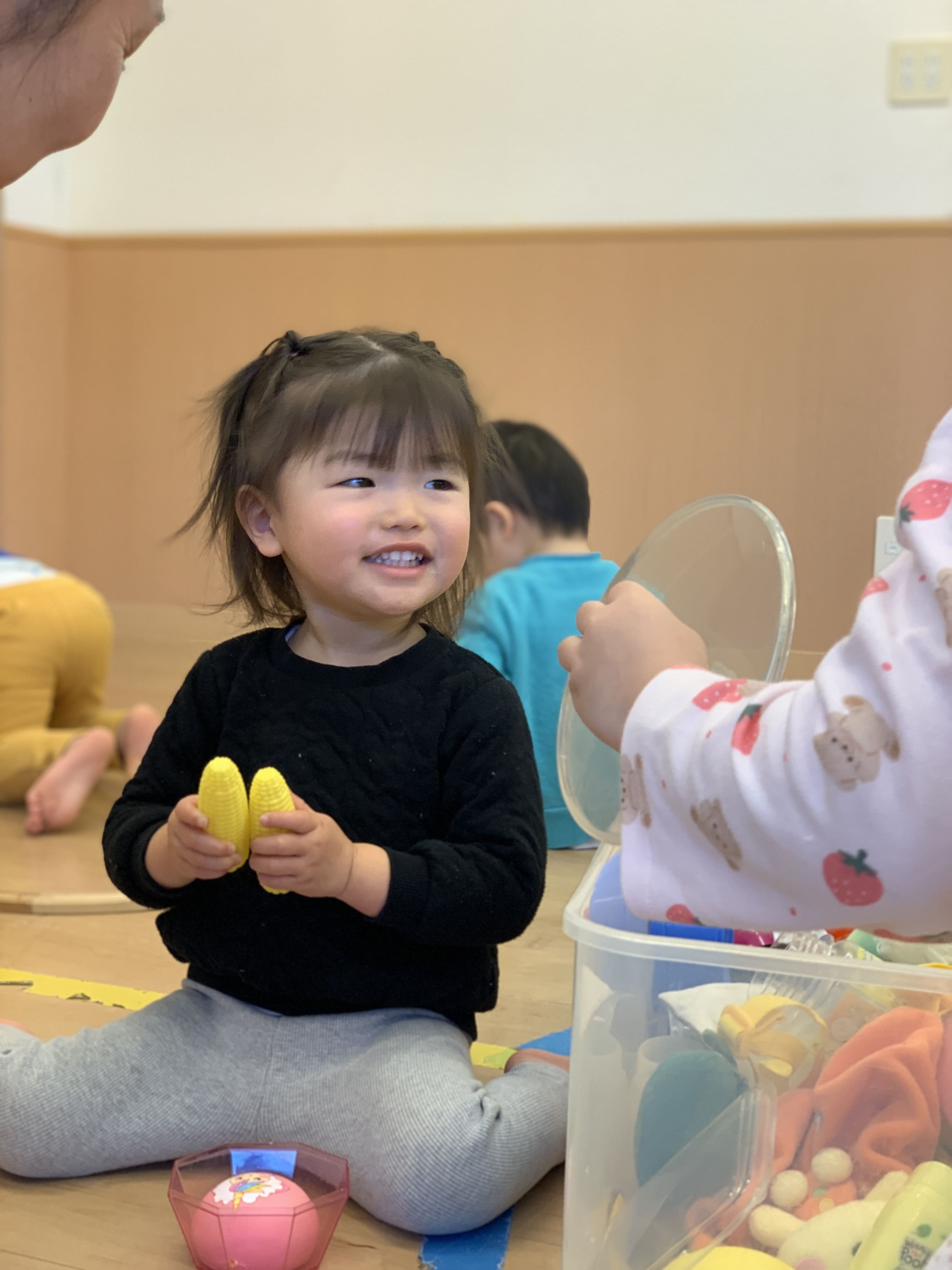 ポカポカと暖かい日差しが保育室に降り注ぎ、子どもたちの笑顔を一層輝かせてくれましたよ。