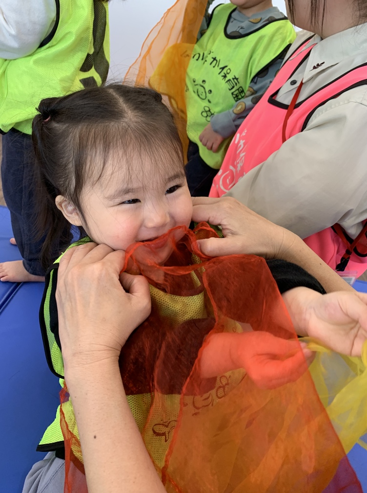 中には、スカーフを顔にあてて「お化粧!」と、みんなでパタパタと楽しそうに真似をする子もいましたよ。