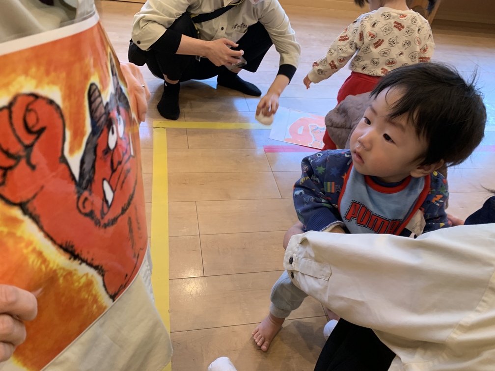 最初に鬼の絵が出てきた時は、「こわい!」と、少し驚いた表情の子どももいましたが、